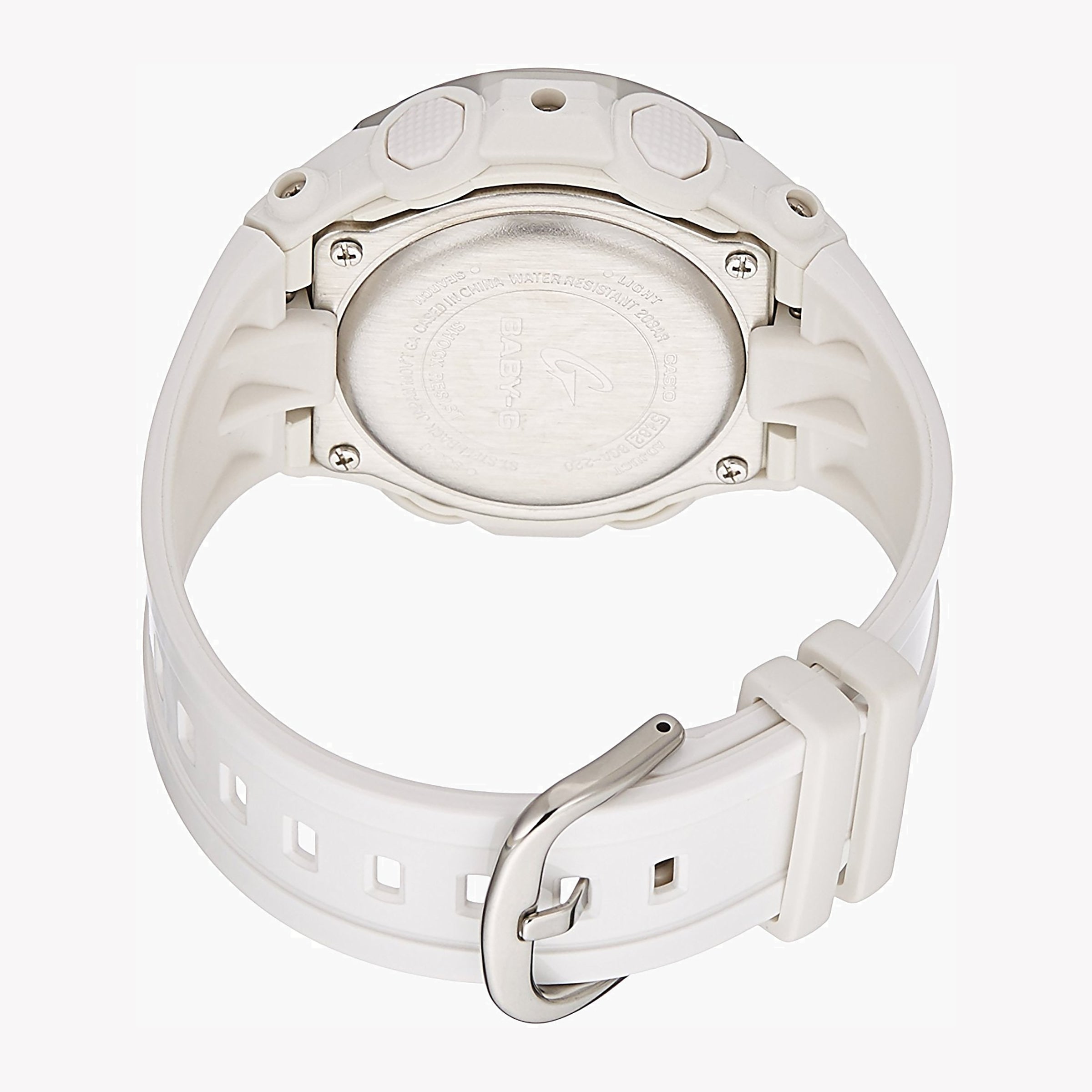 ساعة كاسيو BABY-G BGA-225-7ADR - ساعة نسائية أنيقة للمغامرة مع سوار من الراتنج الأبيض وحافظة فضية