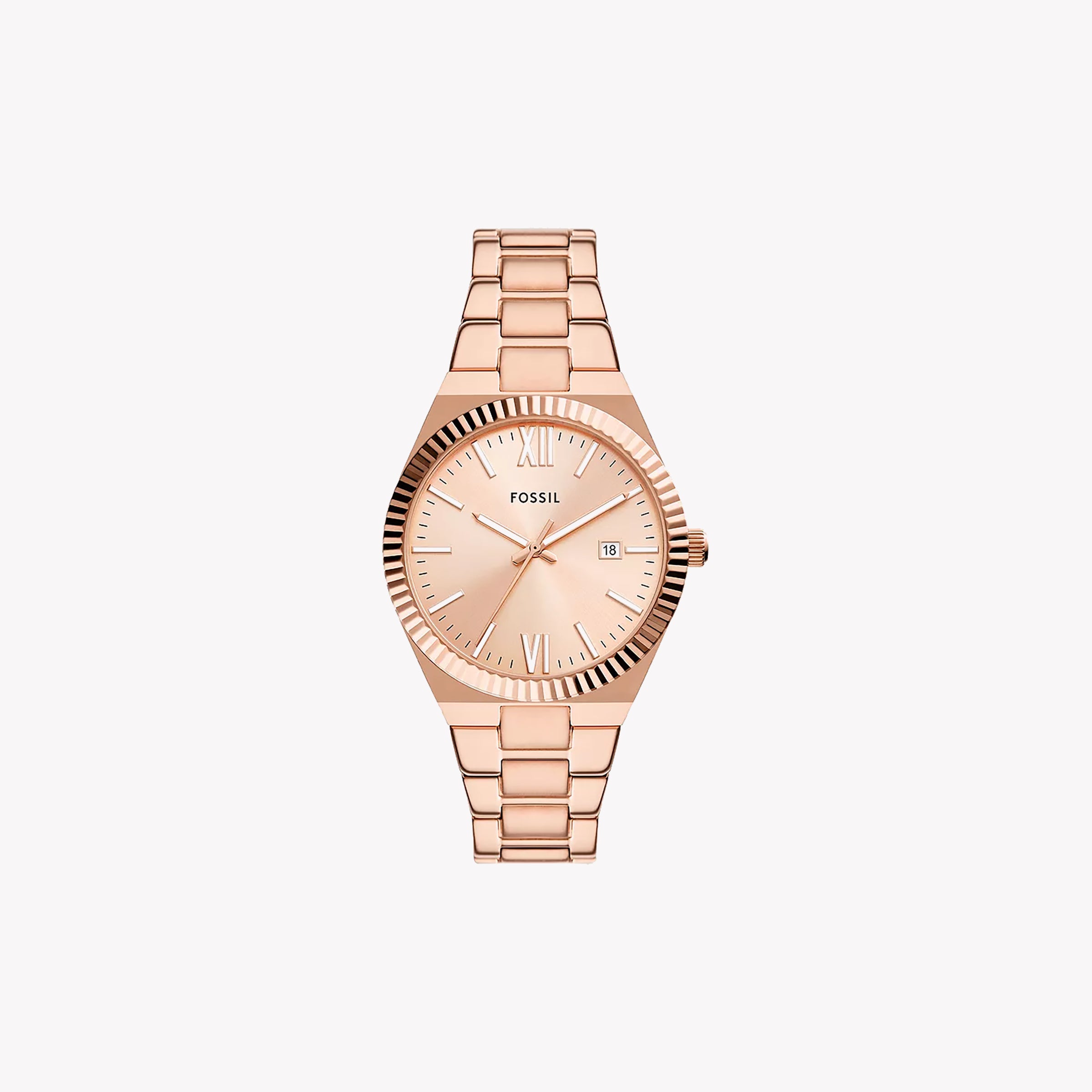 فوسيل ES5258 أناقة الذهب الوردي - ساعة نسائية خالدة بتصميم متطور ودقة كوارتز