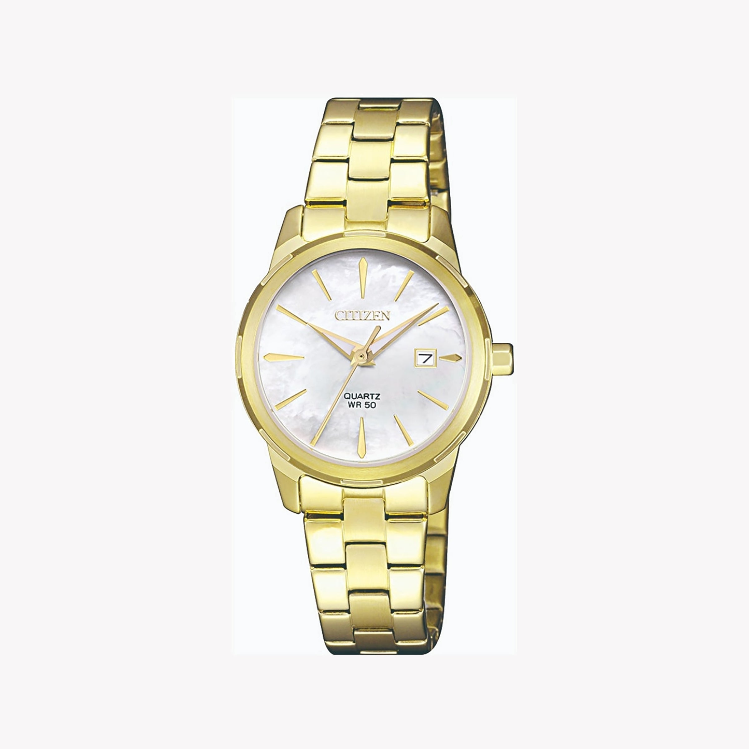 سيتيزن EU6072-56D راديانت إليجانس - ساعة نسائية ذهبية من الستانلس ستيل بمينا أبيض