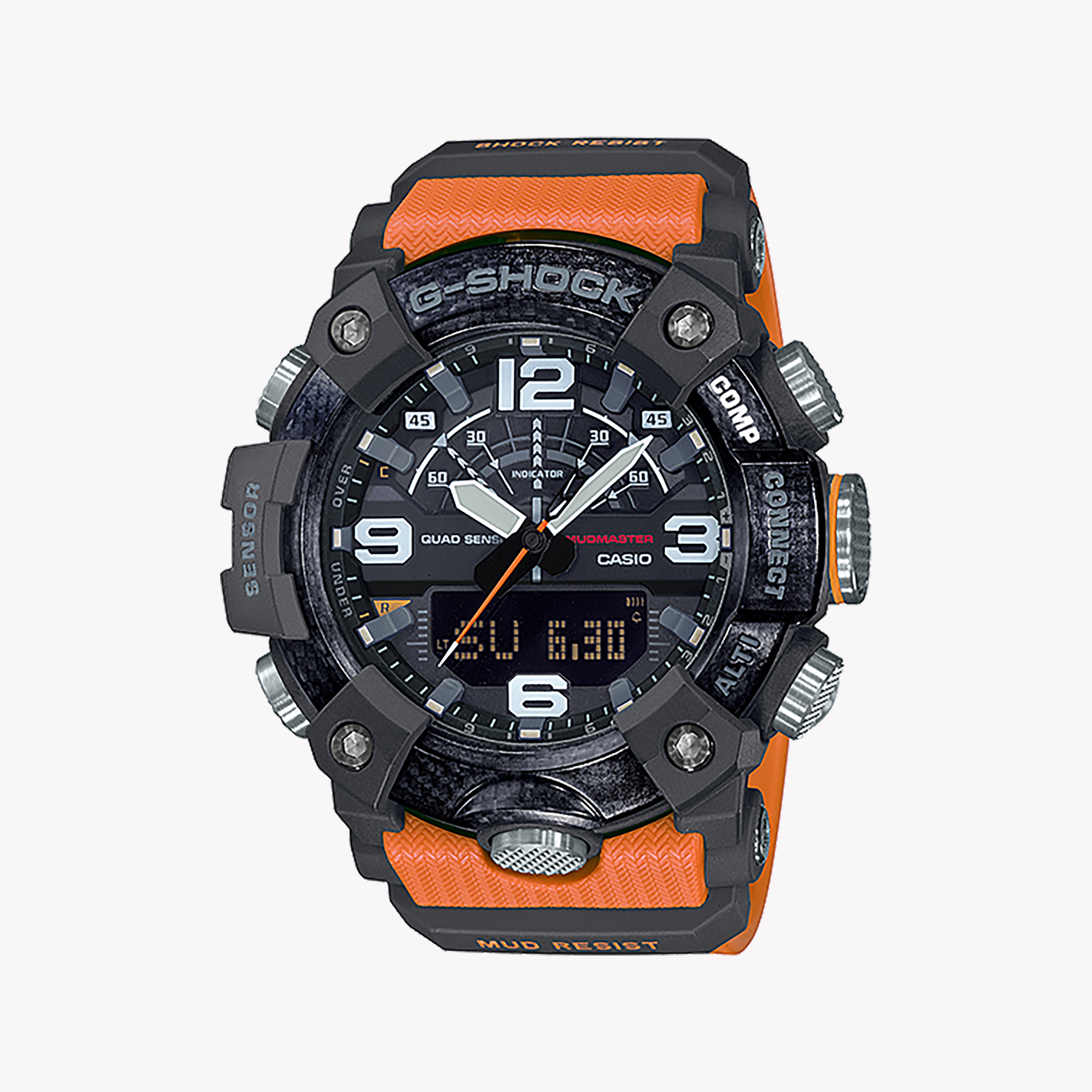 ساعة CASIO G-SHOCK GG-B100-1A9DR - شركة ADVENTURER'S XTREME COMPANION للرجال بتصميم أسود/برتقالي، ومقياس الارتفاع، والبوصلة