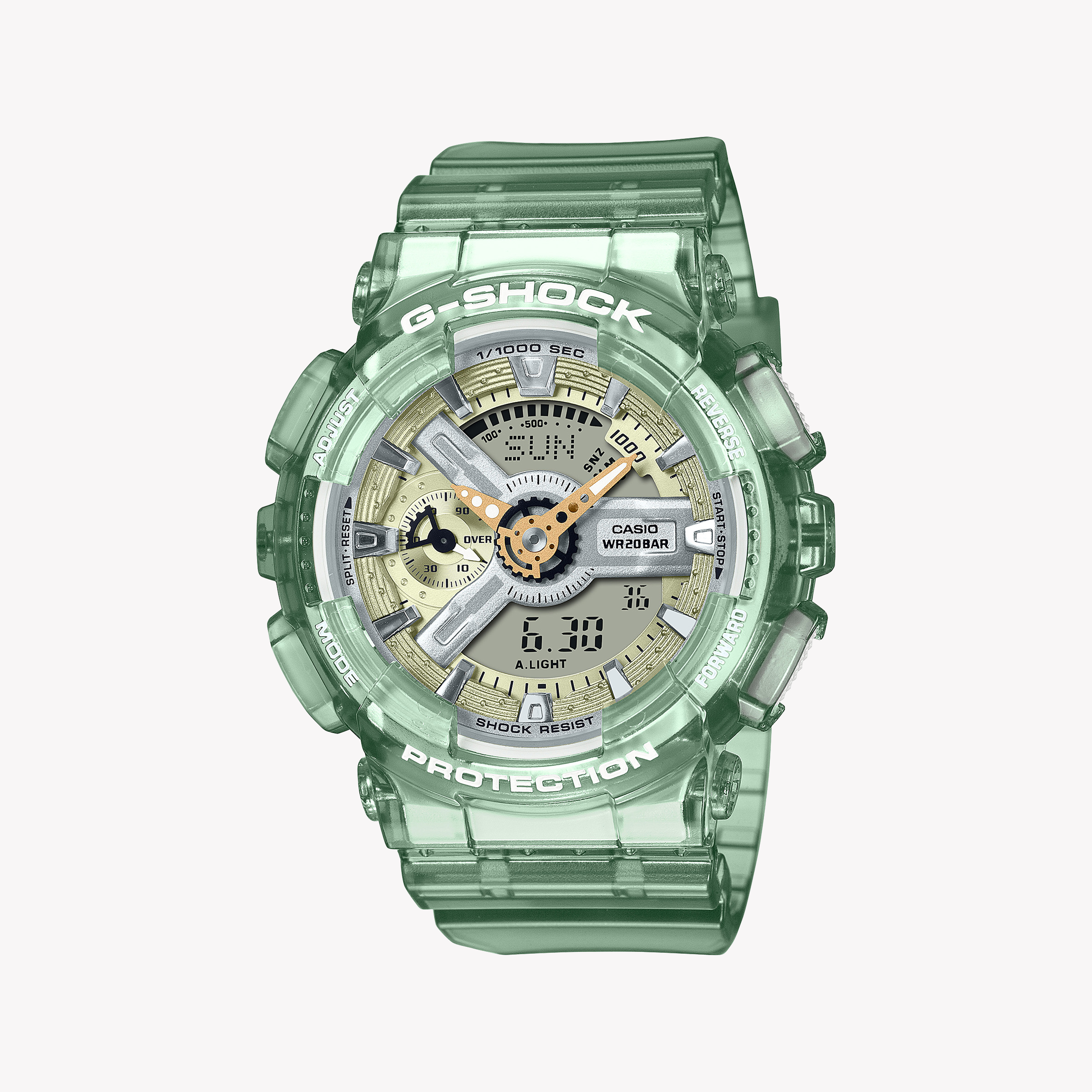 ساعة كاسيو جي شوك GMA-S110GS-3ADR - ساعة ديناميك جرين فيوجن للسيدات بسوار من الراتنج الأخضر النابض بالحياة وأناقة رياضية