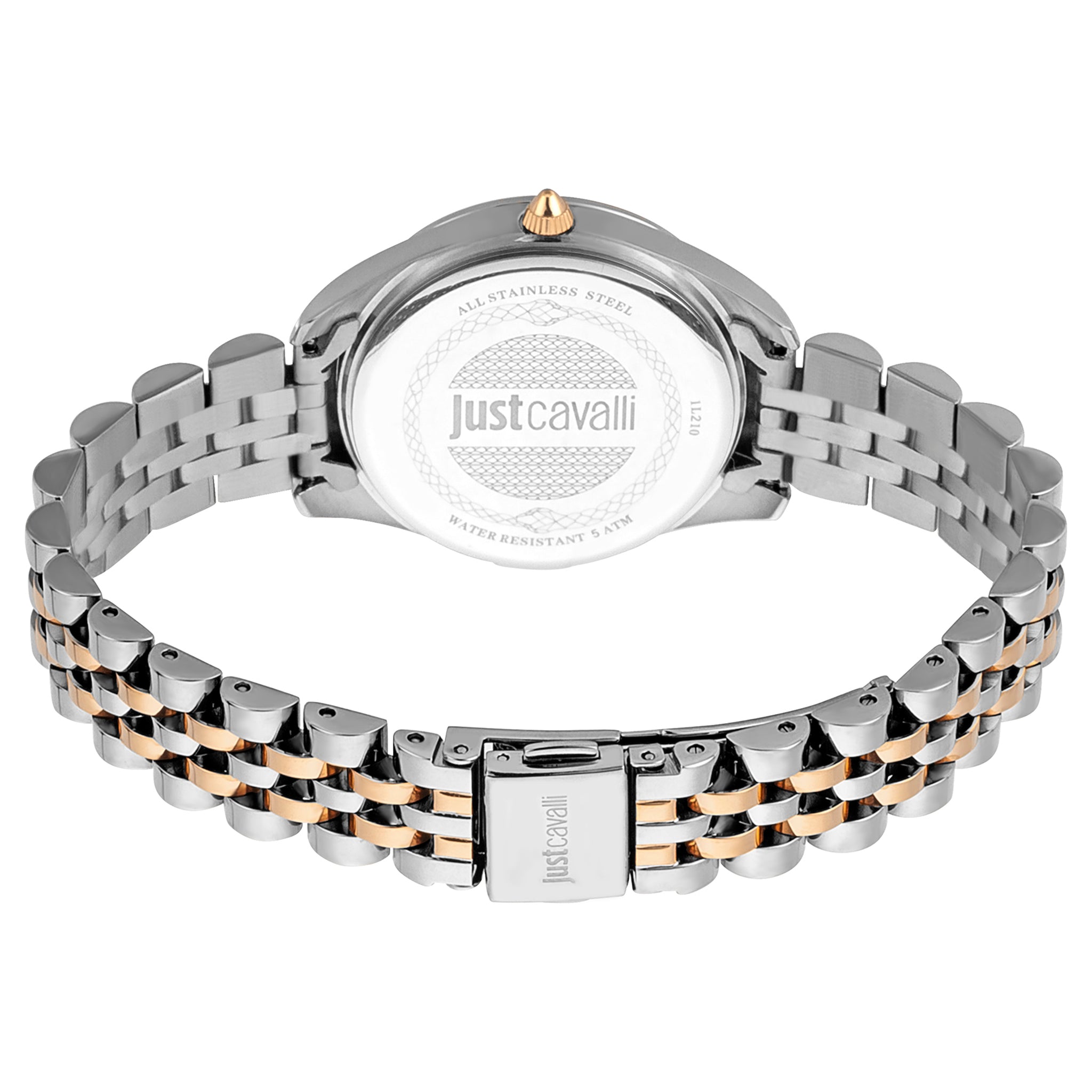 ساعة جست كافالي للسيدات بهيكل من الستانلس ستيل باللونين الفضي والذهبي الوردي وسوار من الستانلس ستيل باللونين الفضي والذهبي الوردي