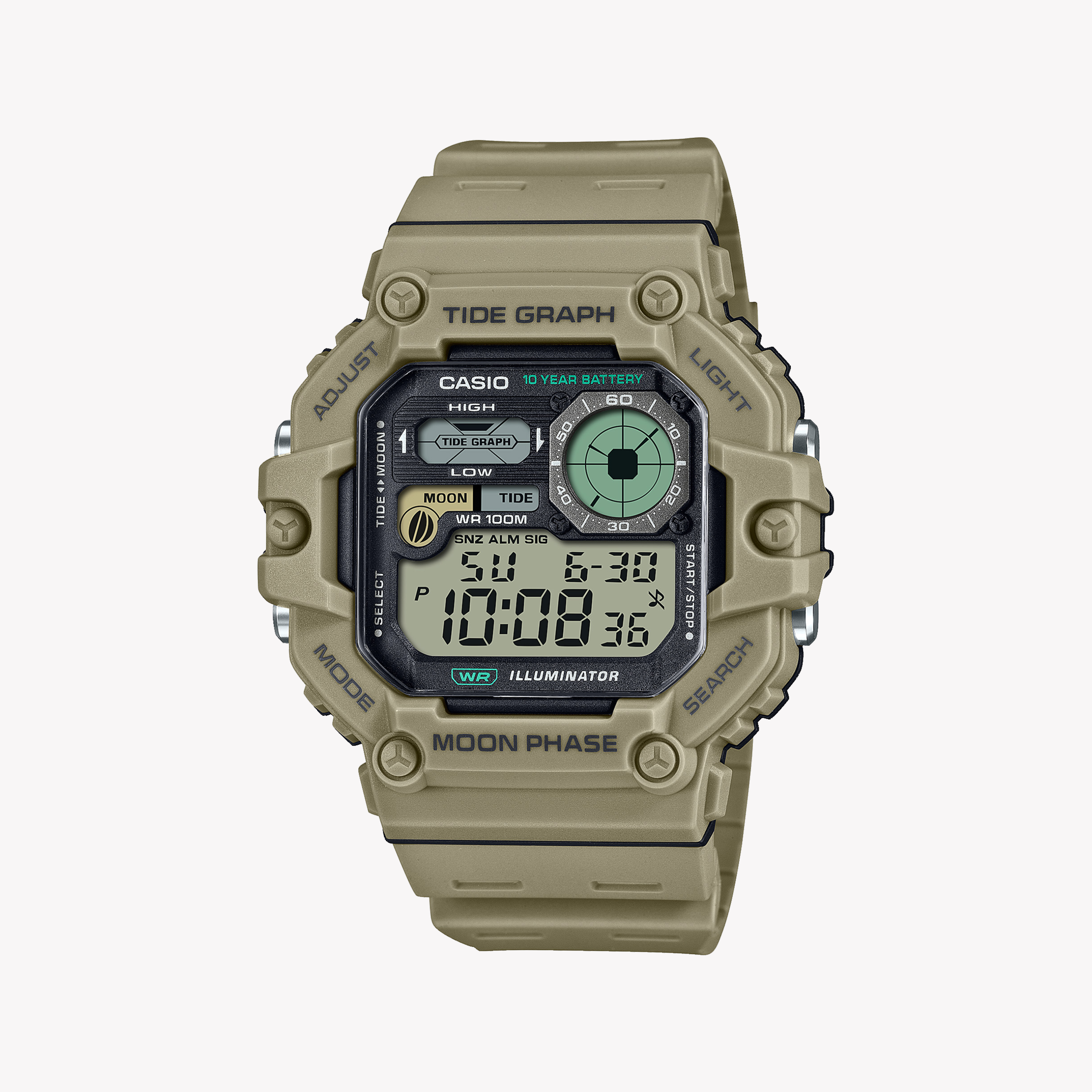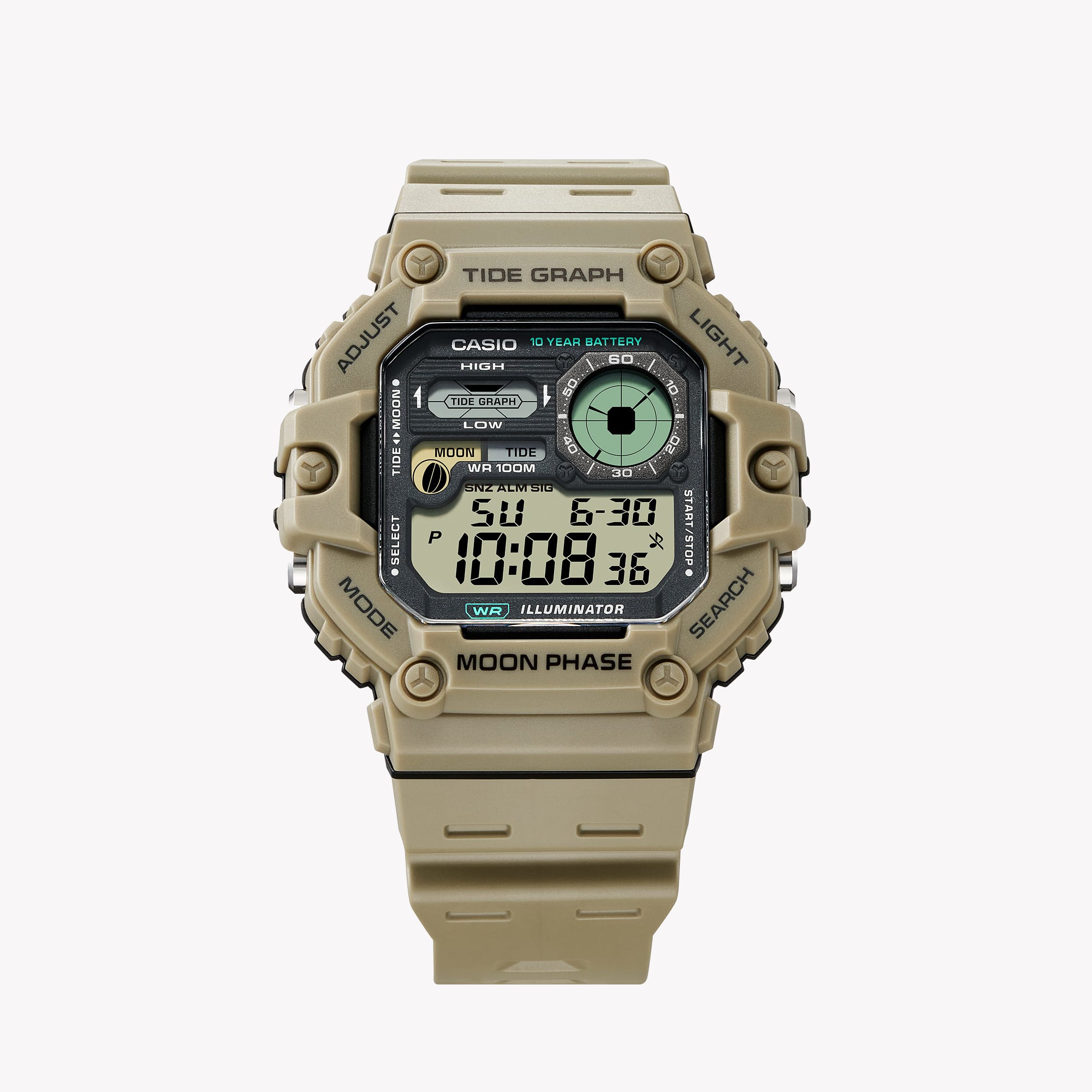 ساعة كاسيو WS-1700H-5AVDF ADVENTURE PRO - الطراز المتين الذي يتوافق مع الوظيفة، للرجال مع سوار من الراتنج باللون البيج وشاشة رقمية