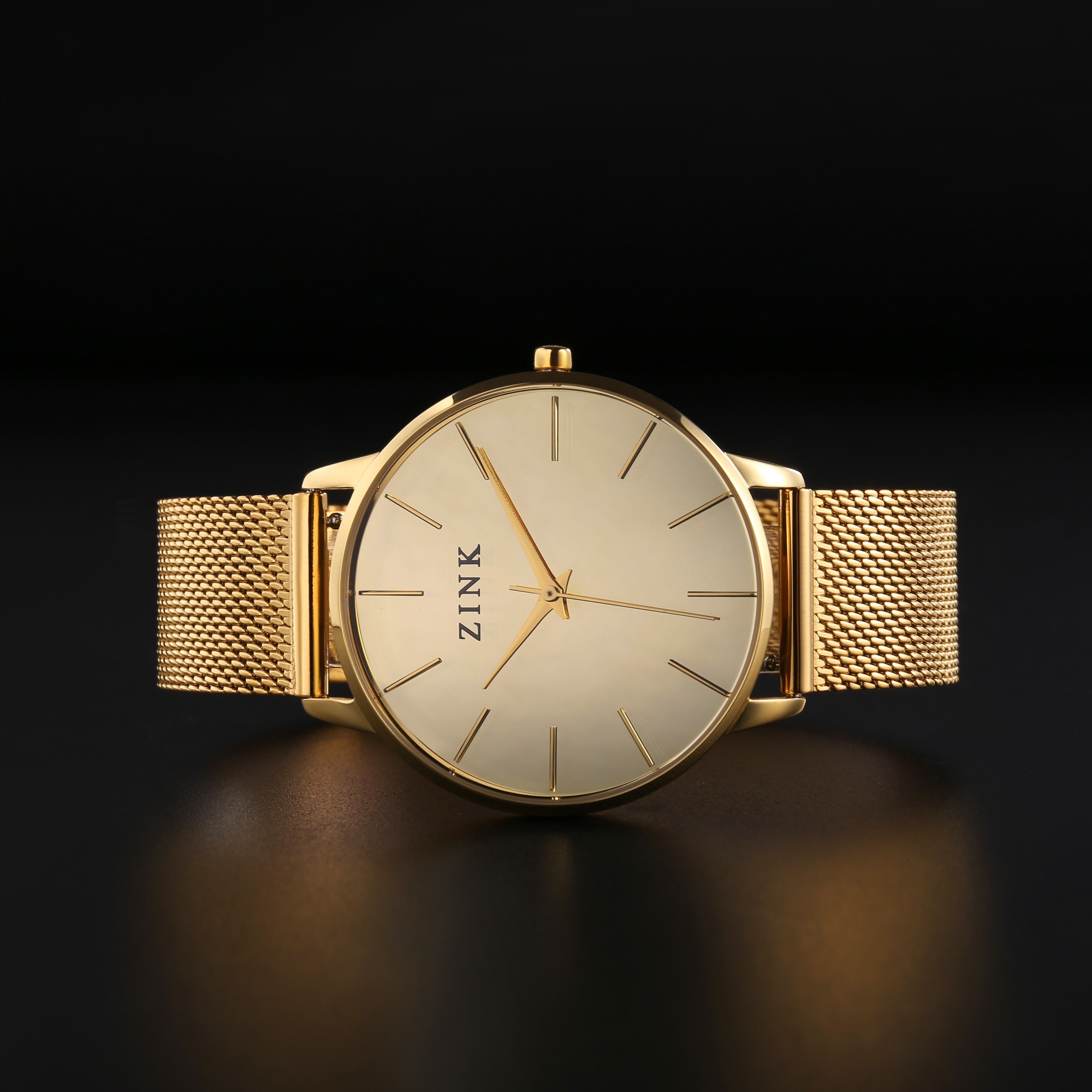 ساعة ZINK للسيدات بهيكل ذهبي من الستانلس ستيل وسوار ذهبي من الستانلس ستيل