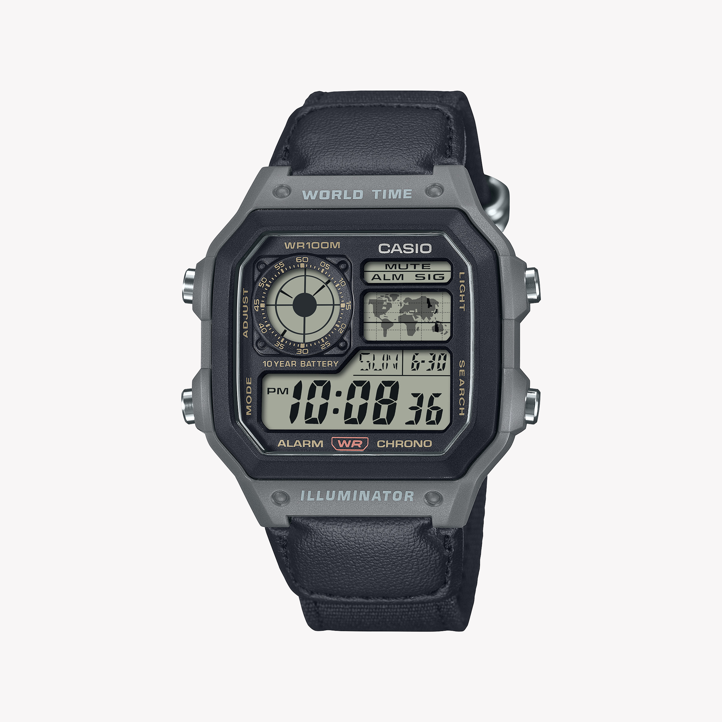 CASIO AE-1200WHUB-8AVEF - أداة لا تشوبها شائبة - ساعة رقمية للرجال بهيكل فضي وسوار جلدي أسود