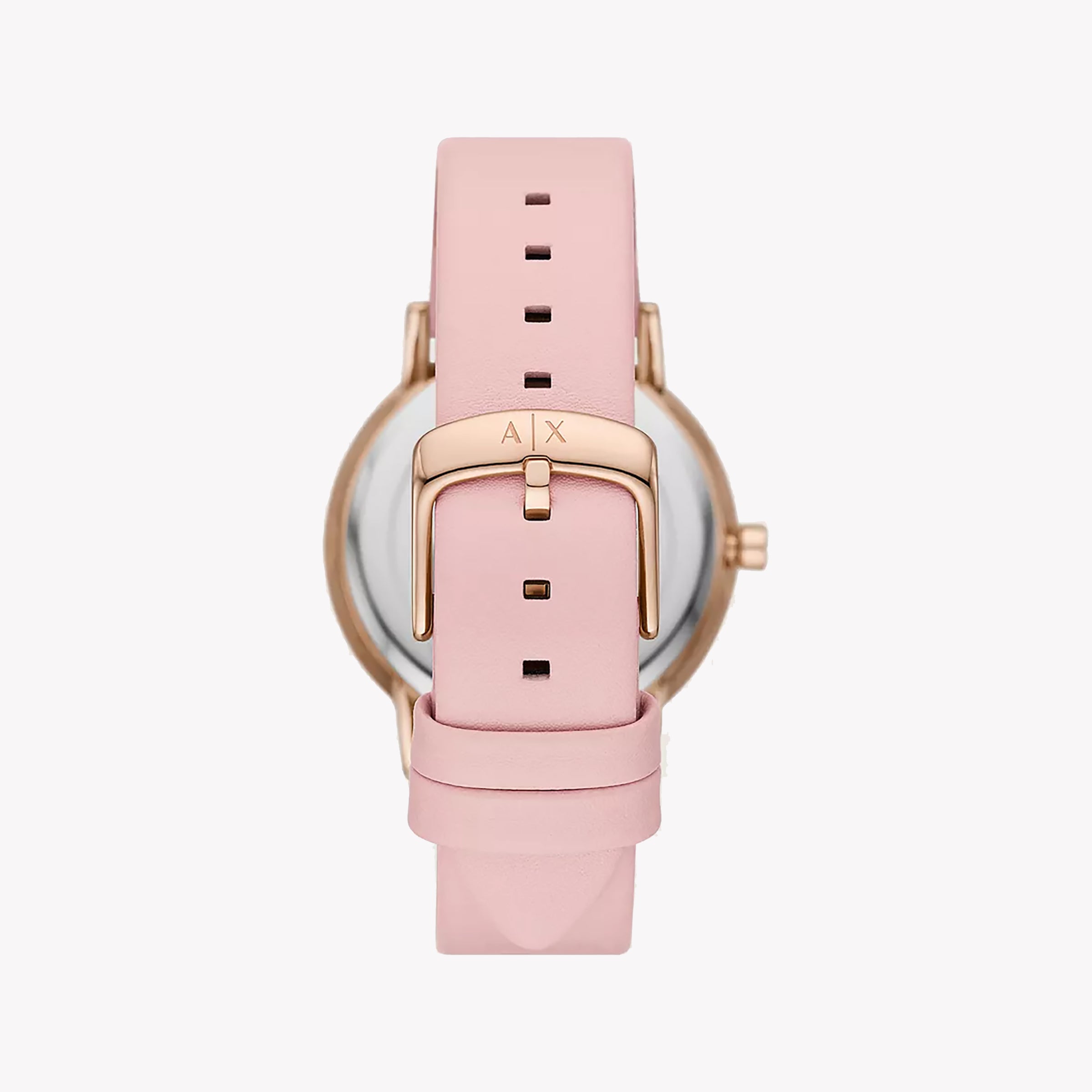 ARMANI EXCHANGE AX7150SET - ساعة نسائية أنيقة من الذهب الوردي مع سوار من الجلد الوردي وميناء مذهل