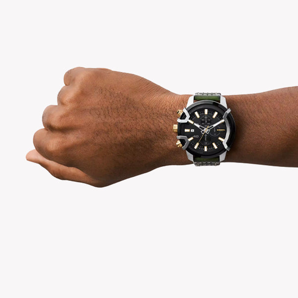 ديزل DZ4585 بولد أدفينتشر - ساعة كرونوغراف للرجال بمينا أسود وسوار من الجلد الأخضر