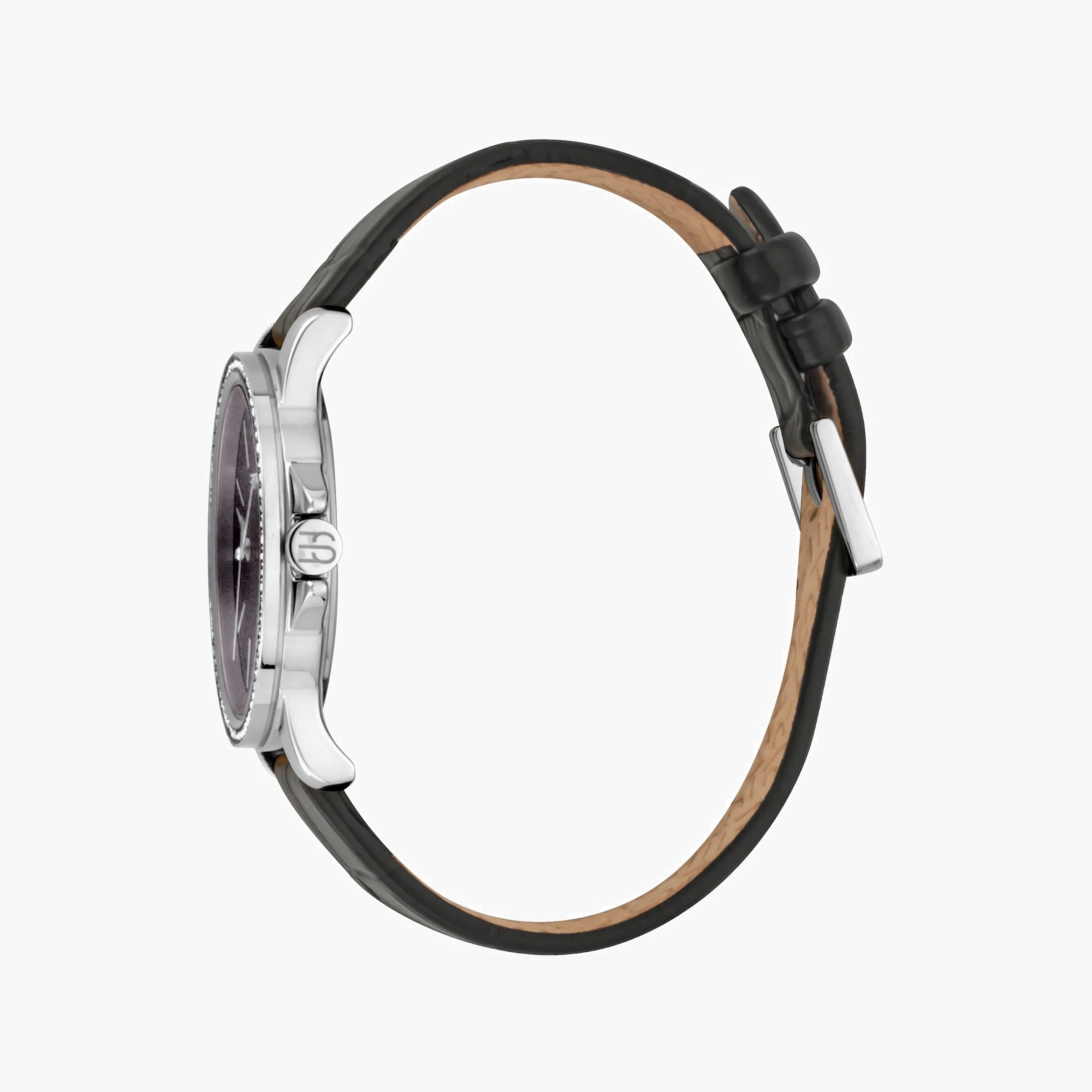 ساعة ESPRIT للسيدات بهيكل فضي من الستانلس ستيل وسوار جلد أسود