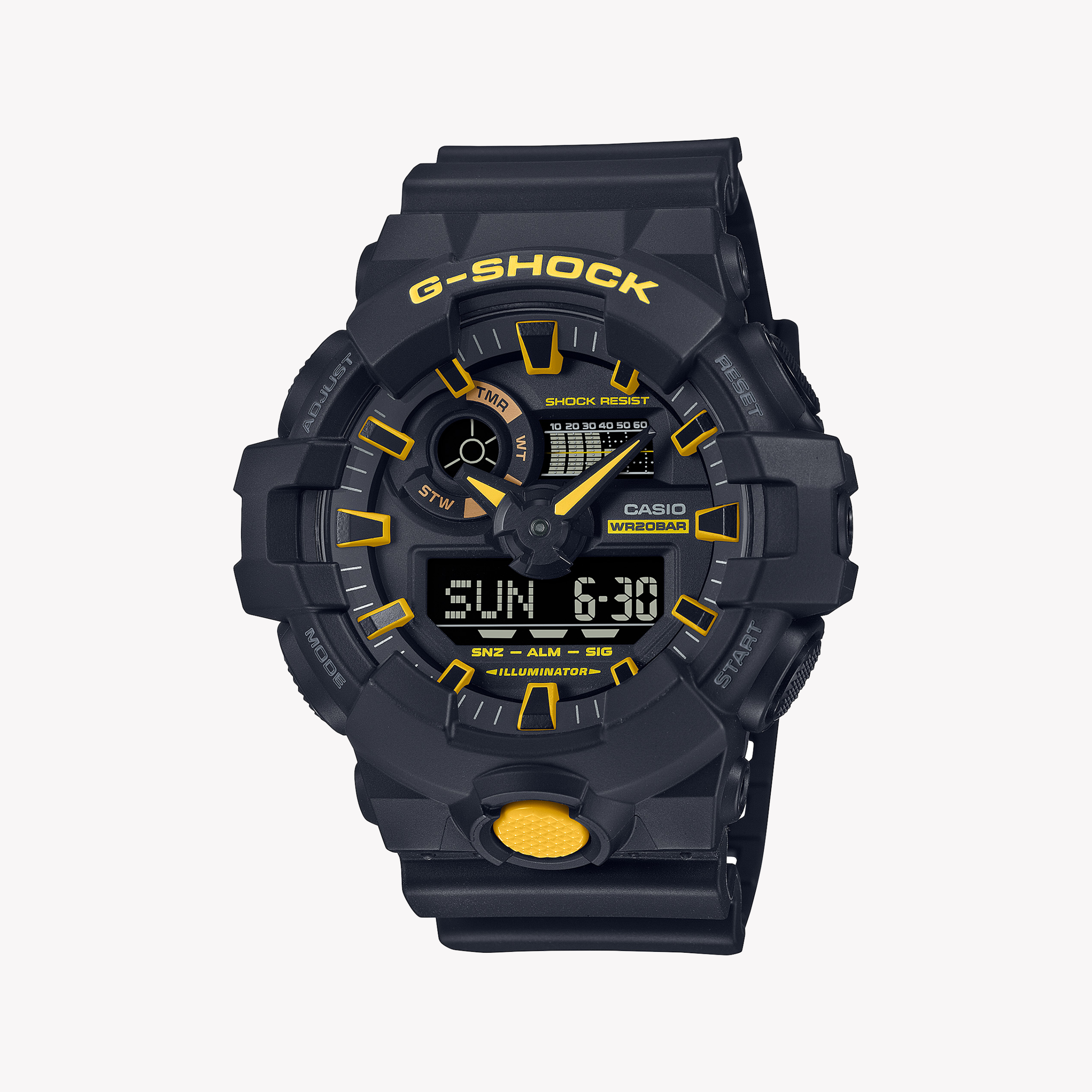 ساعة GA-700CY-1ADR G-SHOCK هي رفيقك المثالي لمواجهة مغامرات الحياة. مصممة لتحمل أقسى الظروف، هذه الساعة الرياضية لا تؤدي فقط بل تضيف أيضًا لمسة مميزة.