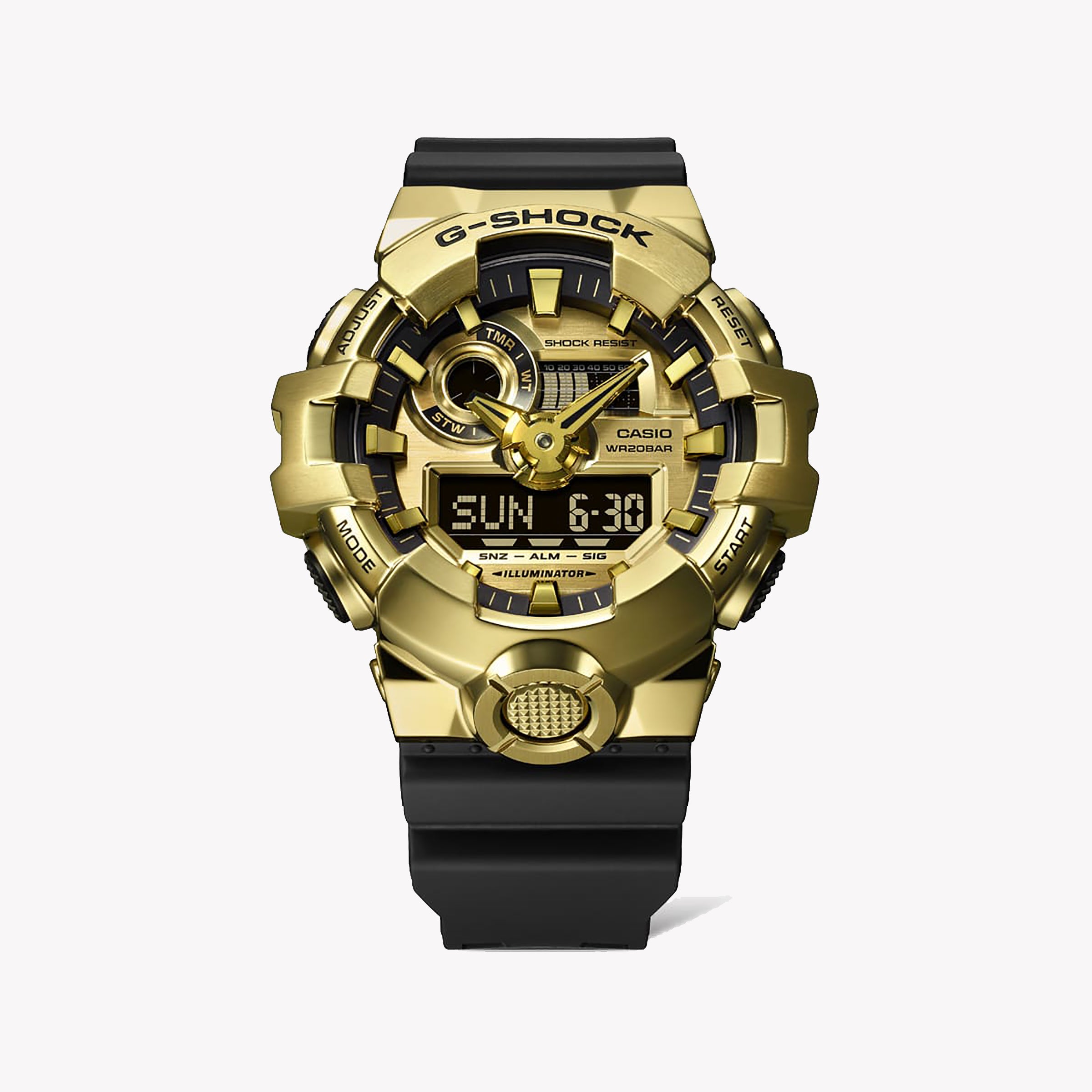 Introducing the Casio G-SHOCK GM-700G-9AER, a striking blend of strength and sophistication. With its bold black stainless steel case and eye-catching gold dial, this men's watch is perfect for the dynamic individual. Crafted for adventure, it offers 20 ATM water resistance and essential functions like a stopwatch and alarm. Embrace a stylish yet functional accessory that enhances your every moment.