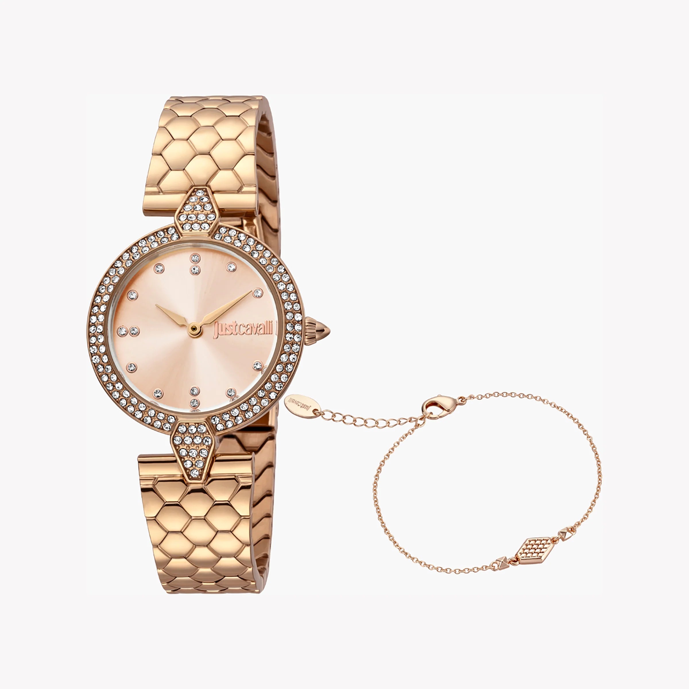 ساعة جست كافالي للسيدات بهيكل من الستانلس ستيل باللون الذهبي الوردي وسوار من الستانلس ستيل باللون الذهبي الوردي