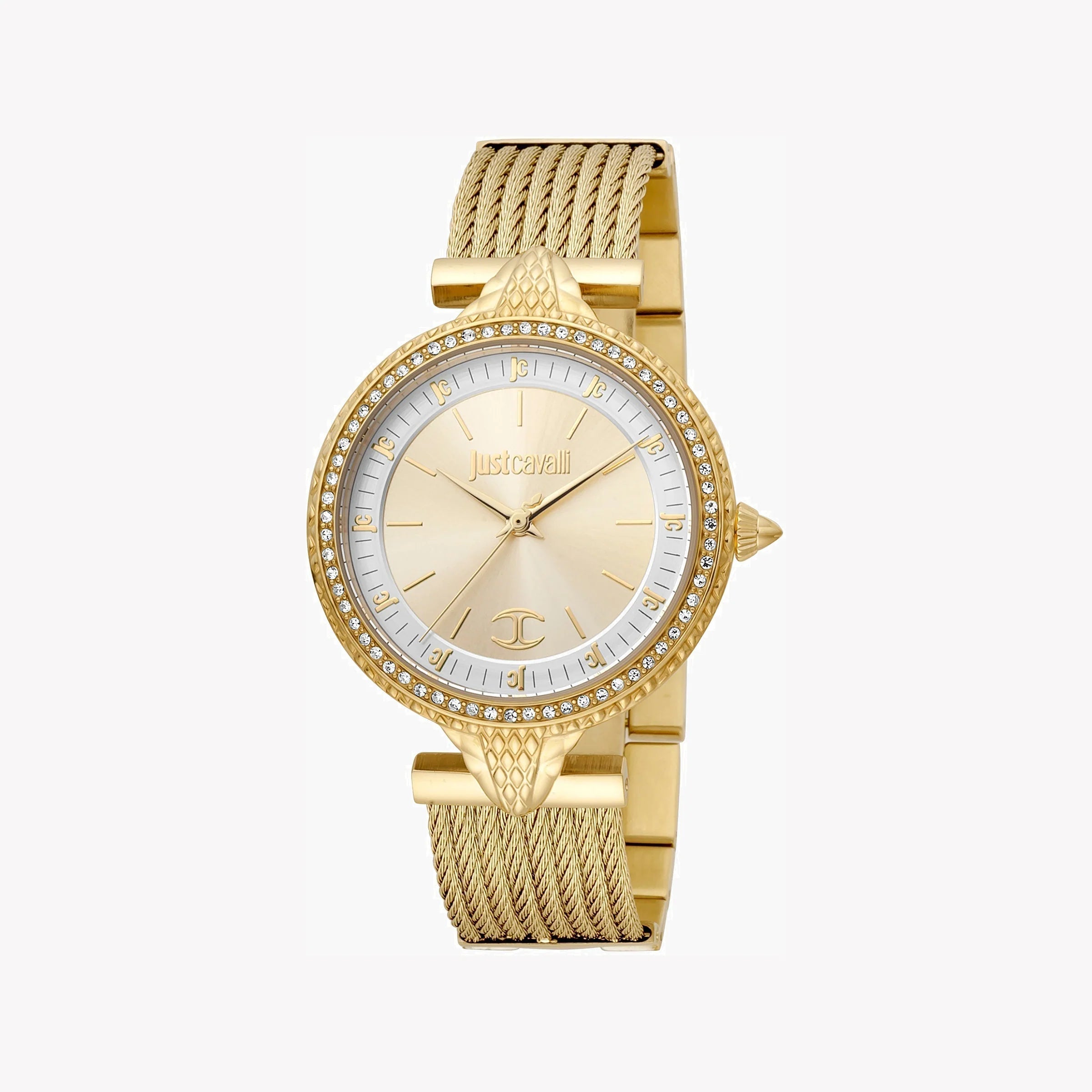 ساعة جست كافالي للسيدات بهيكل ذهبي من الستانلس ستيل وسوار ذهبي من الستانلس ستيل