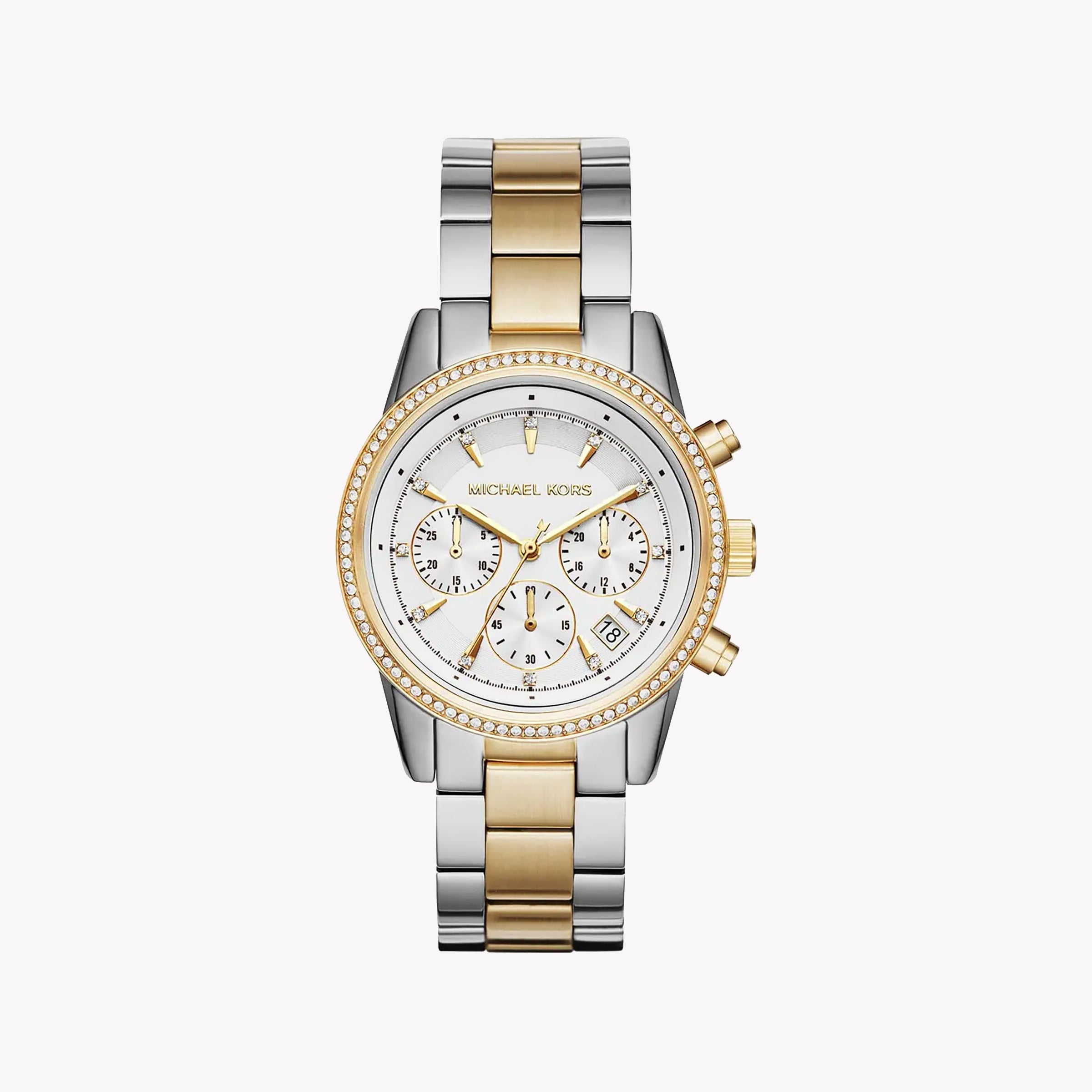 مايكل كورس MK6474 تايمليس أناقة - ساعة نسائية من الستانلس ستيل بمينا أبيض