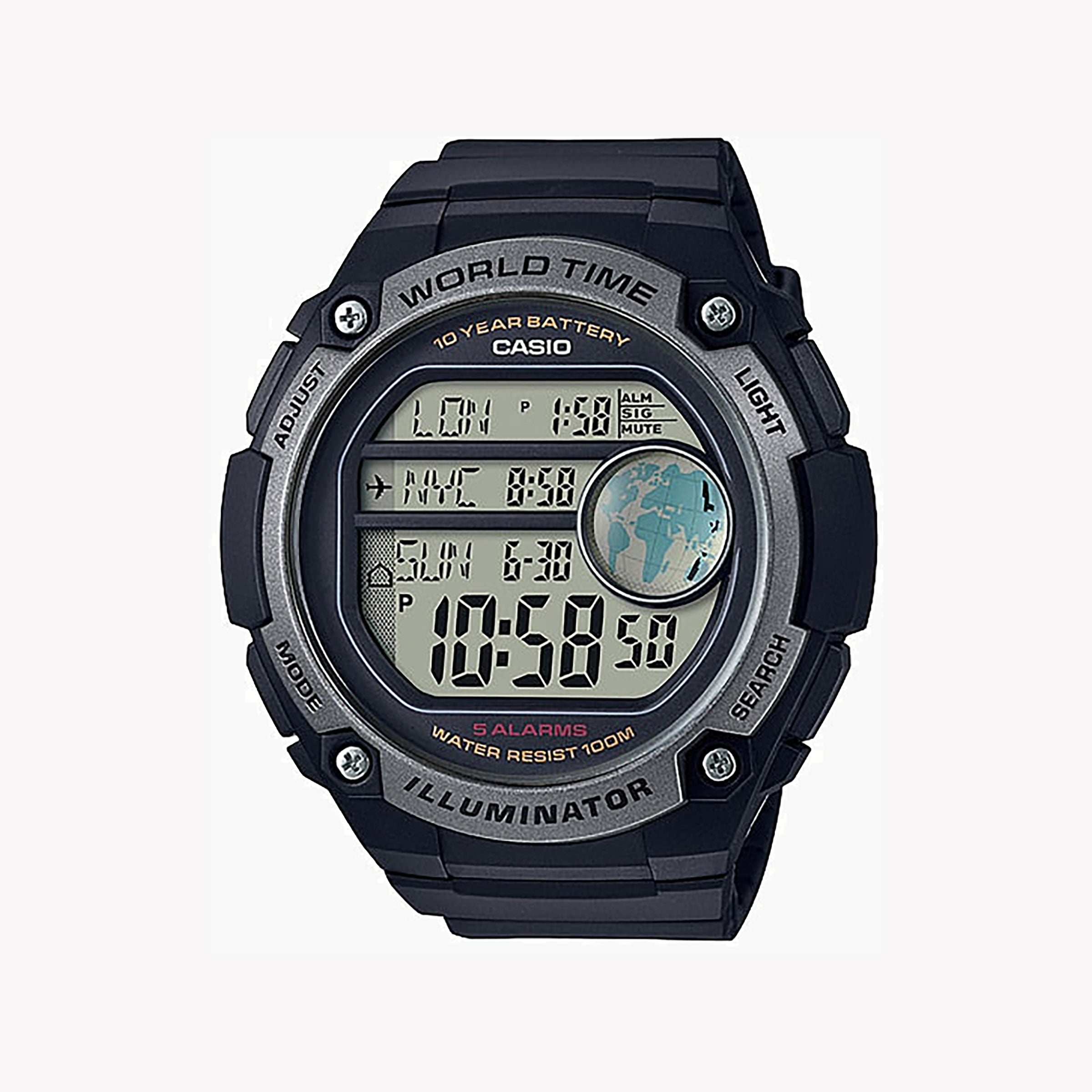 ساعة CASIO AE-3000W-1AVDF BLACK COMMANDER - ADVENTURE AWAITS للرجال بتصميم متين ومناطق زمنية متعددة ومقاومة للماء.