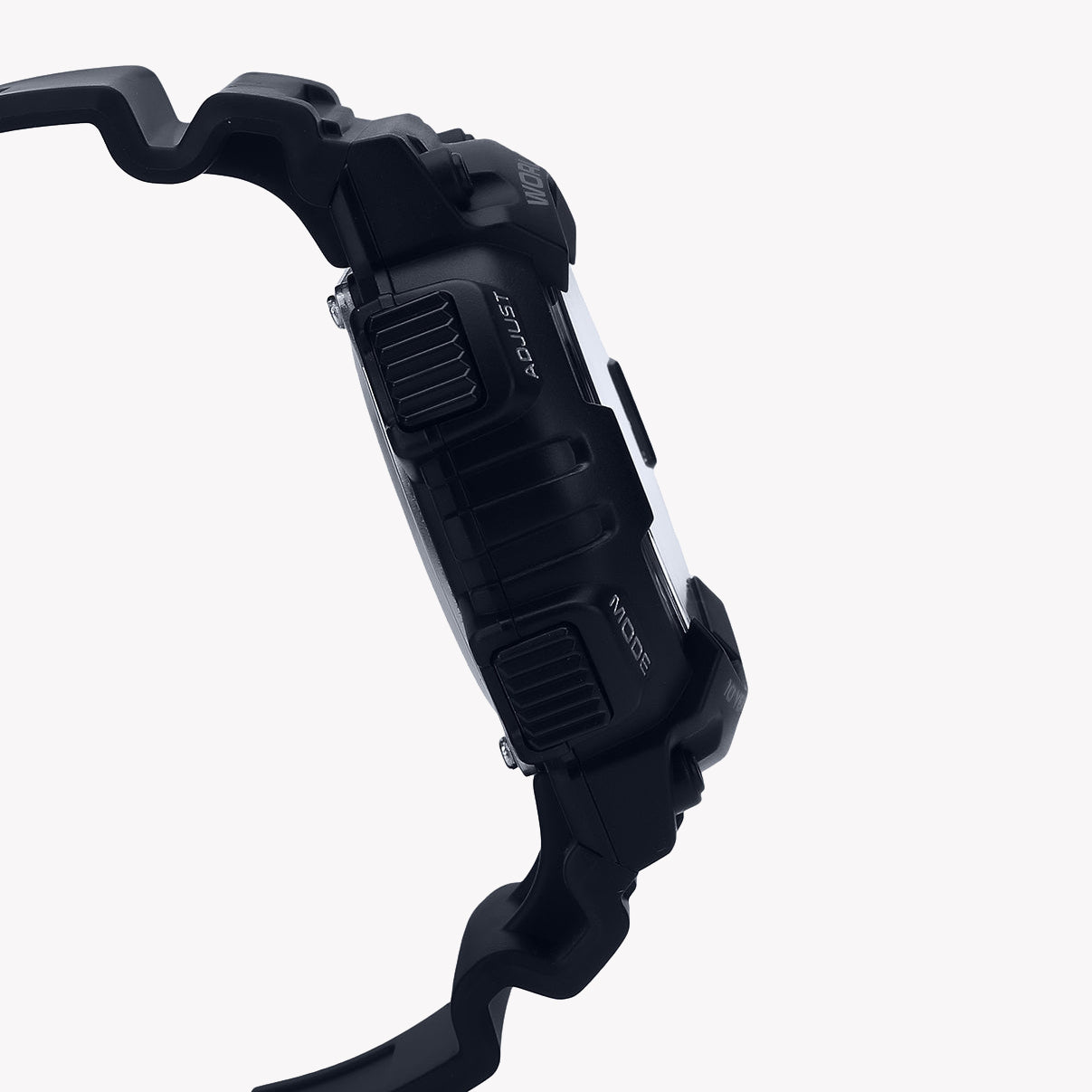 - وظائف متعددة: مع ميزات مثل ساعة توقيف بدقة 1/100 ثانية، منبه يومي، وتقويم تلقائي كامل، تبقيك هذه الساعة على المسار الصحيح ومستعدًا لأي شيء.