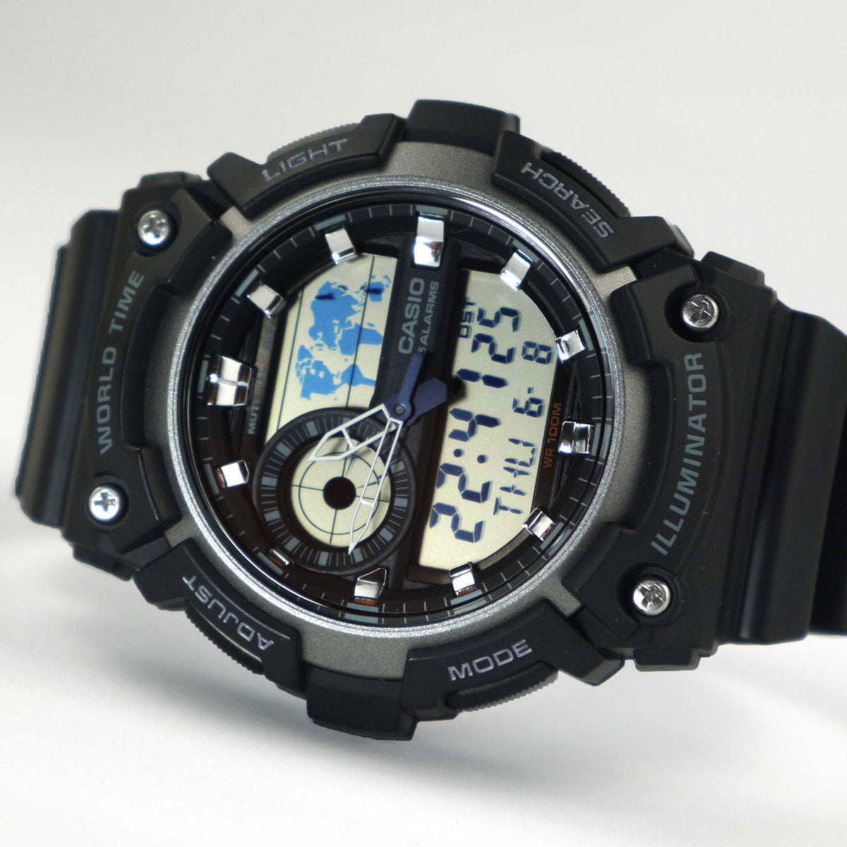 CASIO AEQ-200W-1AVDF - ساعة رجالية ذات أداء عالٍ وتصميم رياضي باللون الأسود