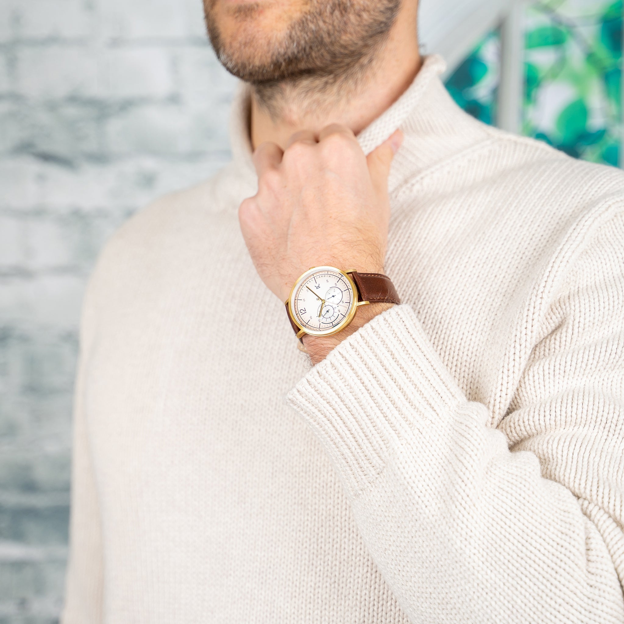 ساعة أنيقة وفاخرة، تتميز ساعة بيير كاردان بعلبة دائرية ذهبية من الفولاذ المقاوم للصدأ وسوار من الجلد البني مع واجهة بلون البيج. يبلغ قطر العلبة 42 مم وستكون إضافة رائعة لمظهرك.