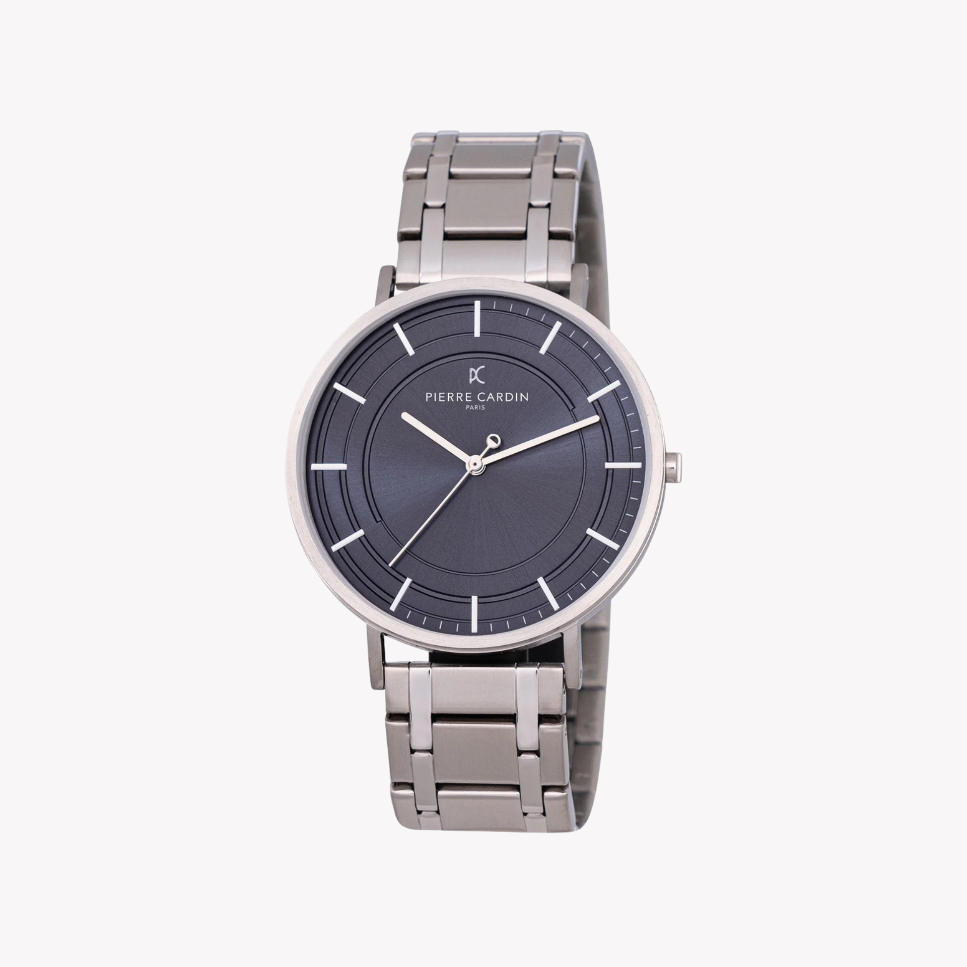ساعة بيير كاردان CBN.3032 الفاخرة للرجال - معدن فضي أنيق وميناء أزرق