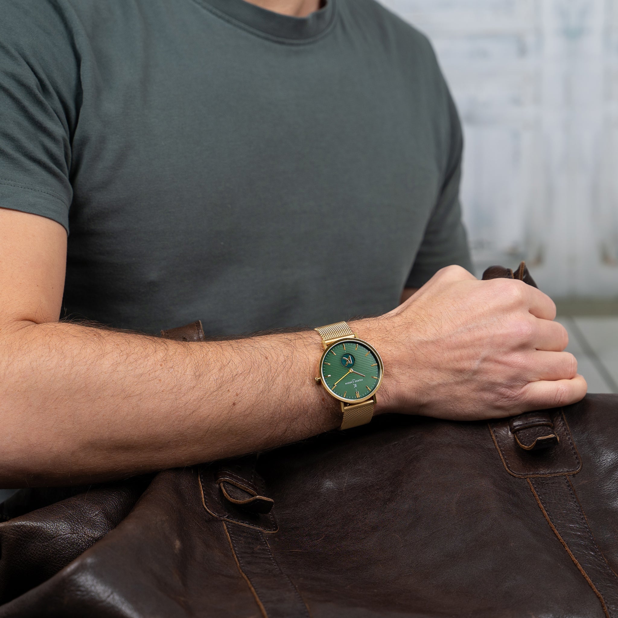 ساعة بيير كاردان CBV.1046 للرجال - ميناء أخضر فاخر مع سوار ذهبي من الفولاذ المقاوم للصدأ