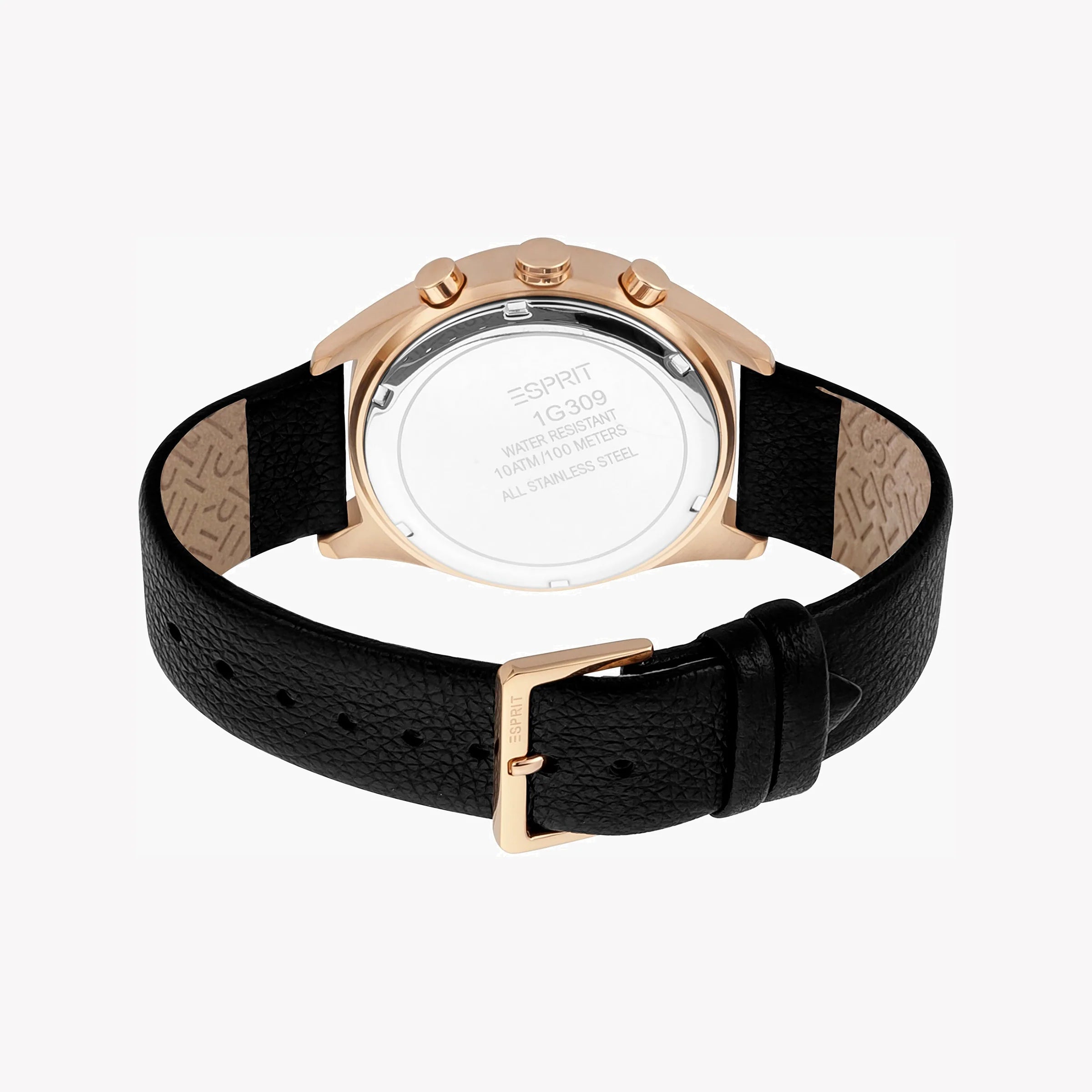 ساعة ESPRIT للرجال - جلد أسود أنيق وذهبي وردي - ساعة أنيقة ومتينة