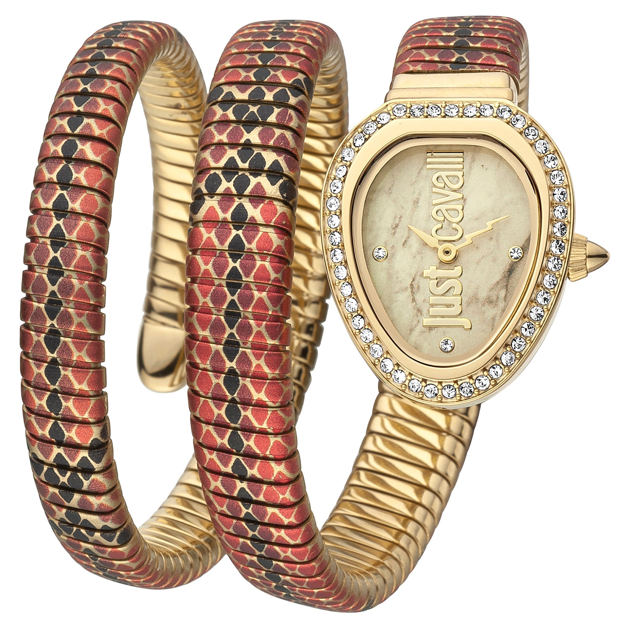 ساعة جست كافالي للسيدات بهيكل ذهبي من الستانلس ستيل وسوار من الستانلس ستيل ذهبي وأحمر وأسود