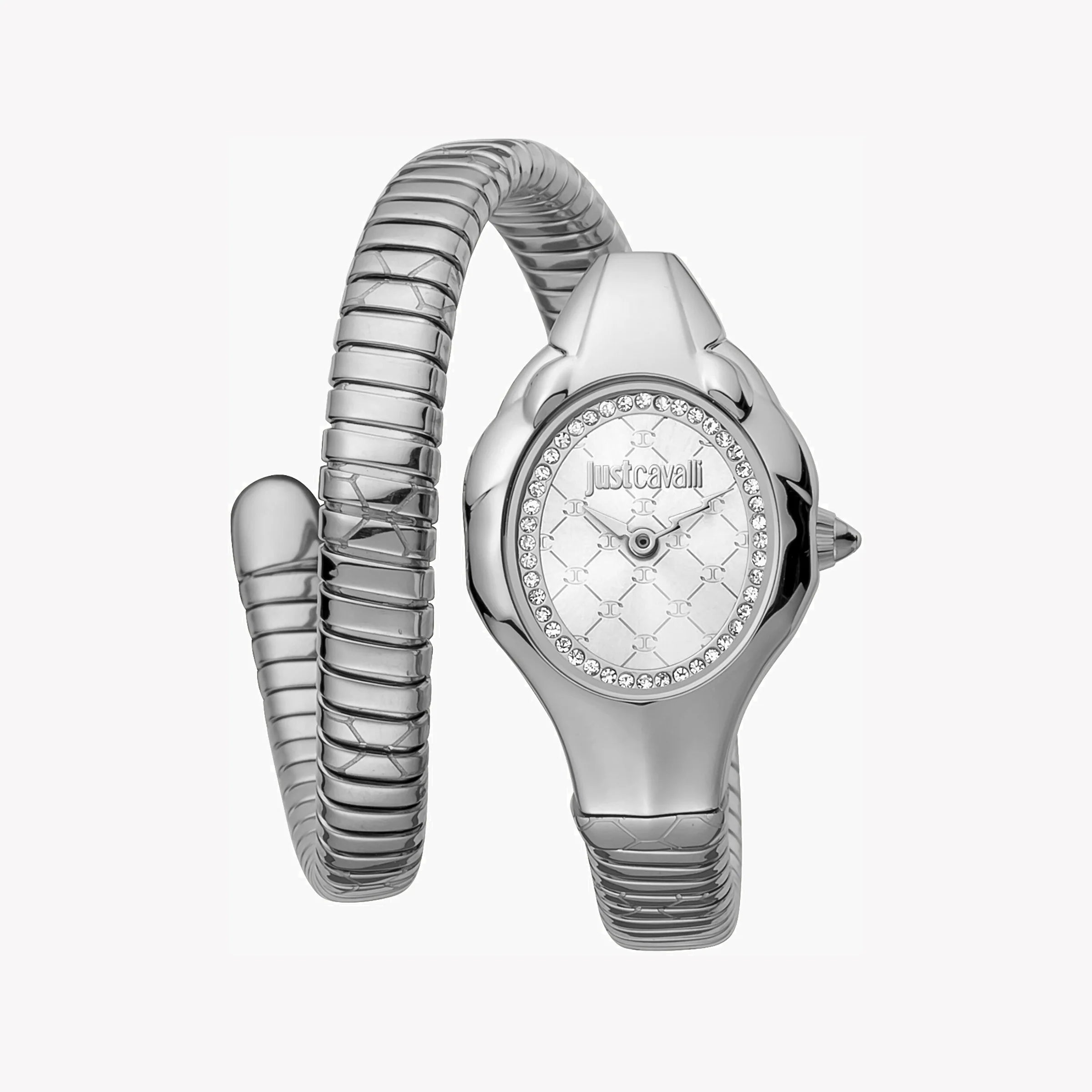 خالدة، متطورة، أنيقة. تتمتع هذه الساعة النسائية من Just Cavalli بكل ما تحتاجه. من الحزام الفضي المصنوع من الفولاذ المقاوم للصدأ إلى العلبة الفضية غير المتناظرة المصنوعة من الفولاذ المقاوم للصدأ بقطر 22 مم وبالطبع المينا الفضية الأنيقة، تمثل هذه الساعة التطور الأنيق الأمثل.