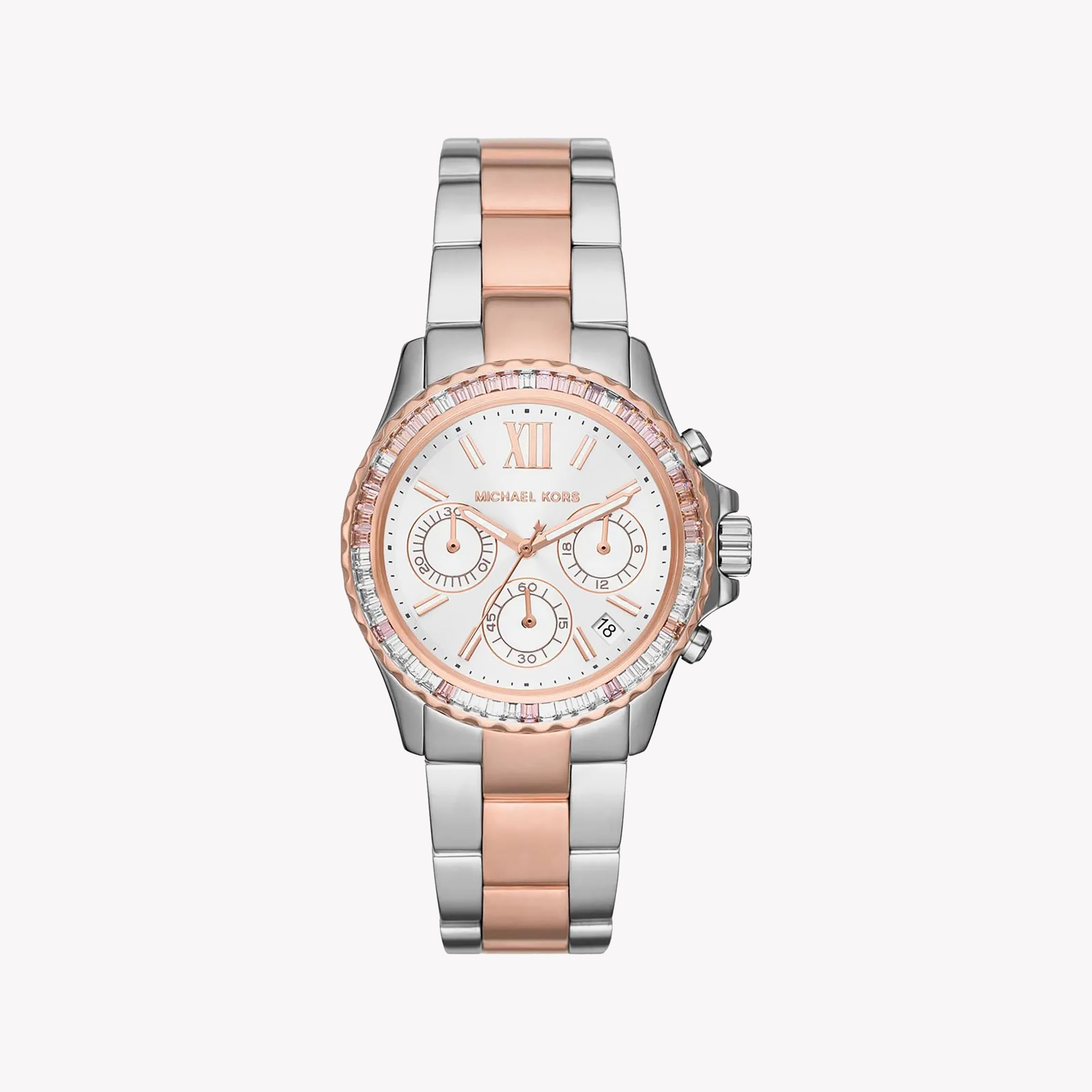 ساعة مايكل كورس MK7214 الأنيقة - ساعة نسائية عصرية باللون الفضي والذهبي الوردي