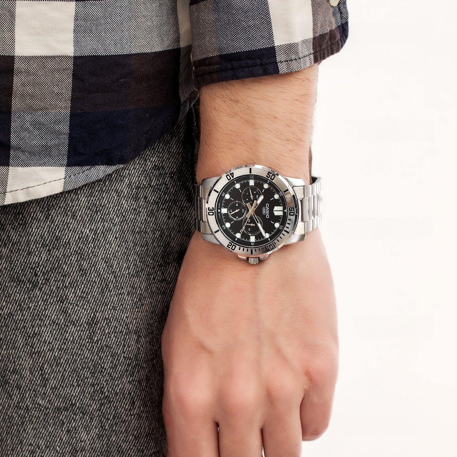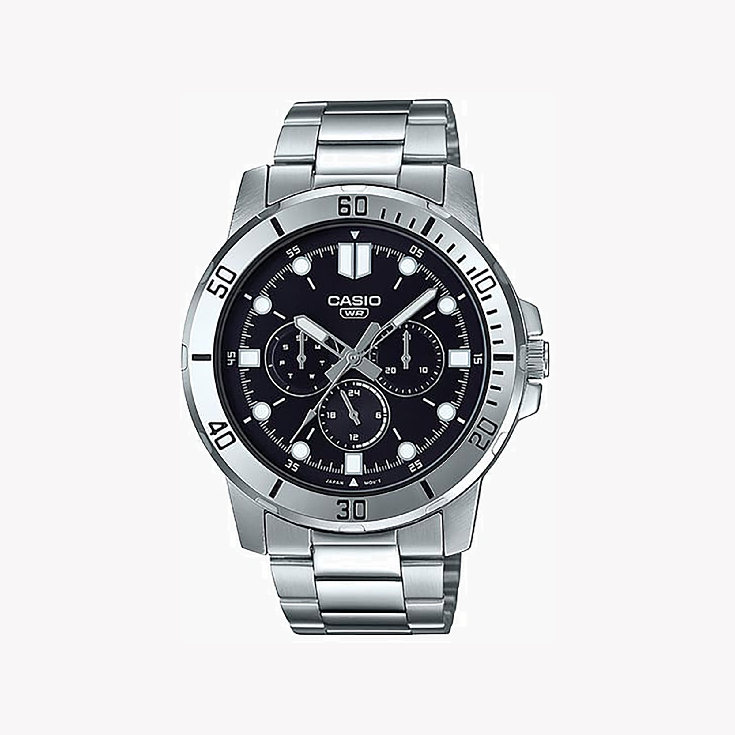 ساعة كاسيو MTP-VD300D-1E الديناميكية المتعددة - ساعة رجالية أنيقة بمينا أسود وسوار من الستانلس ستيل