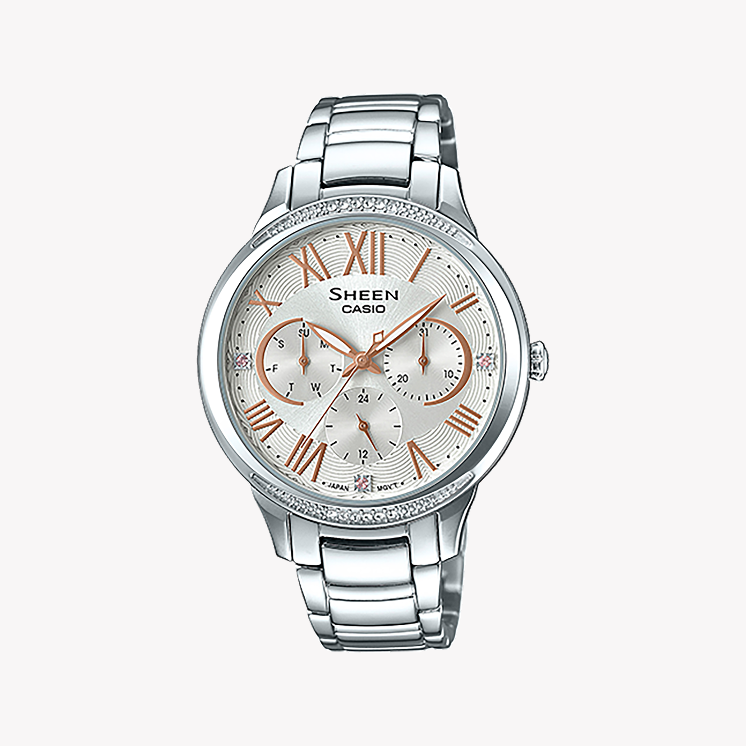 CASIO SHE-3058D-7AUDR ELEGANT ADVENTURE - ساعة نسائية خالدة بتصميم فضي مذهل