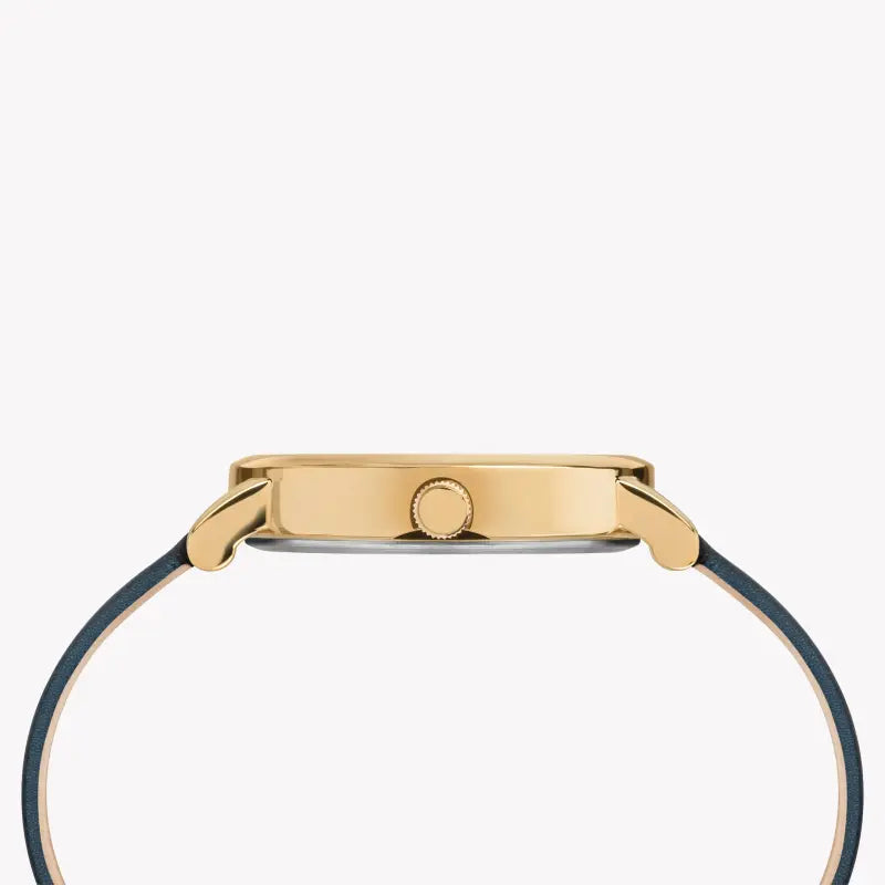 ساعة TIMEX النسائية بهيكل من النحاس الذهبي وسوار جلدي أزرق