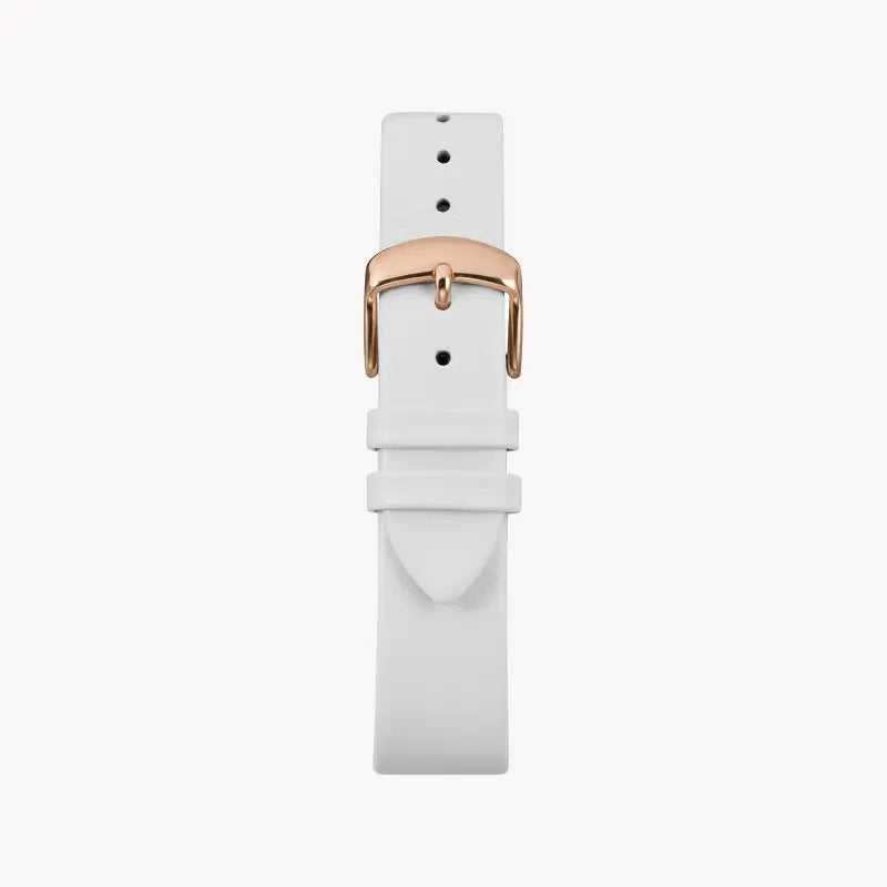 ساعة TIMEX النسائية مع هيكل من النحاس الذهبي الوردي وسوار من الجلد الأبيض