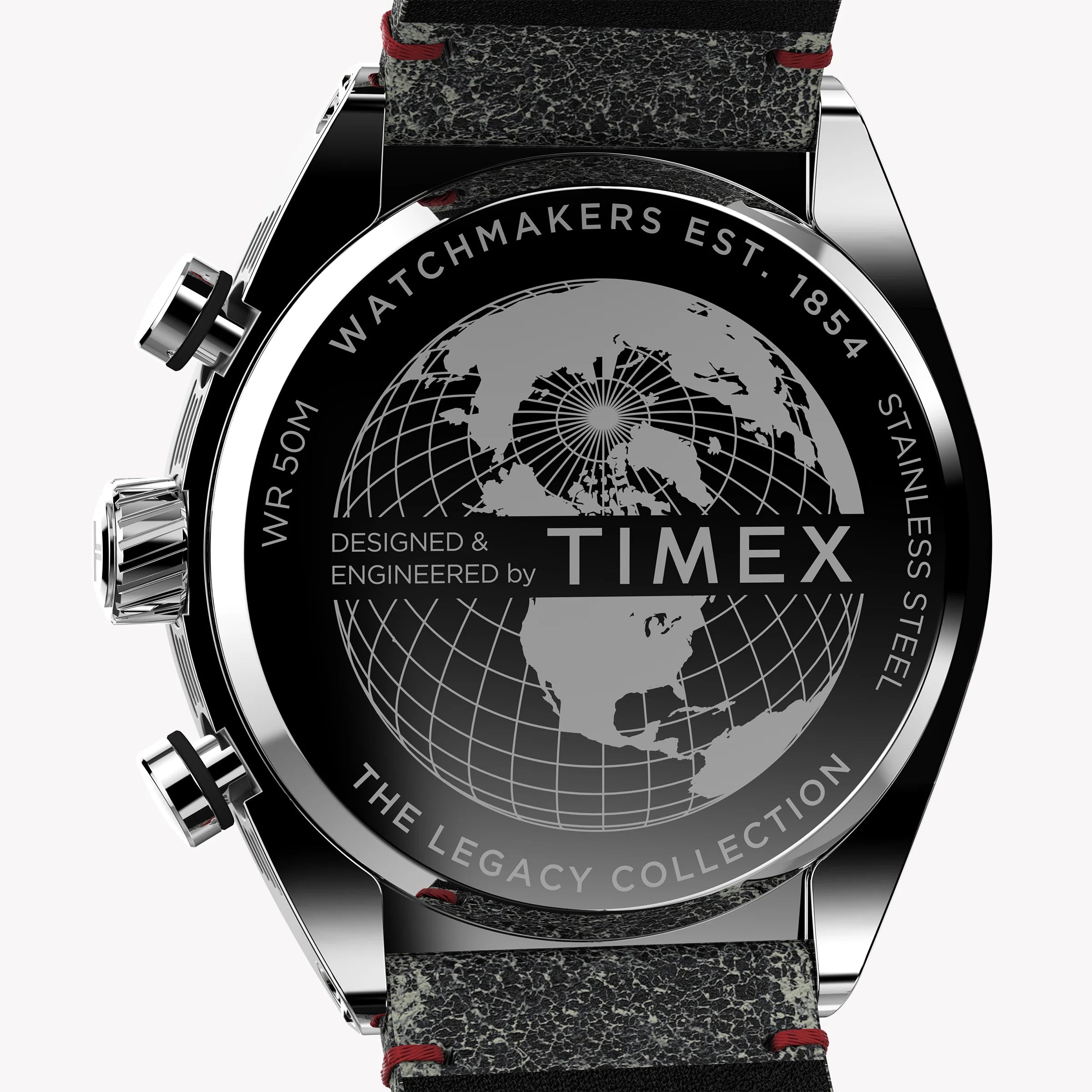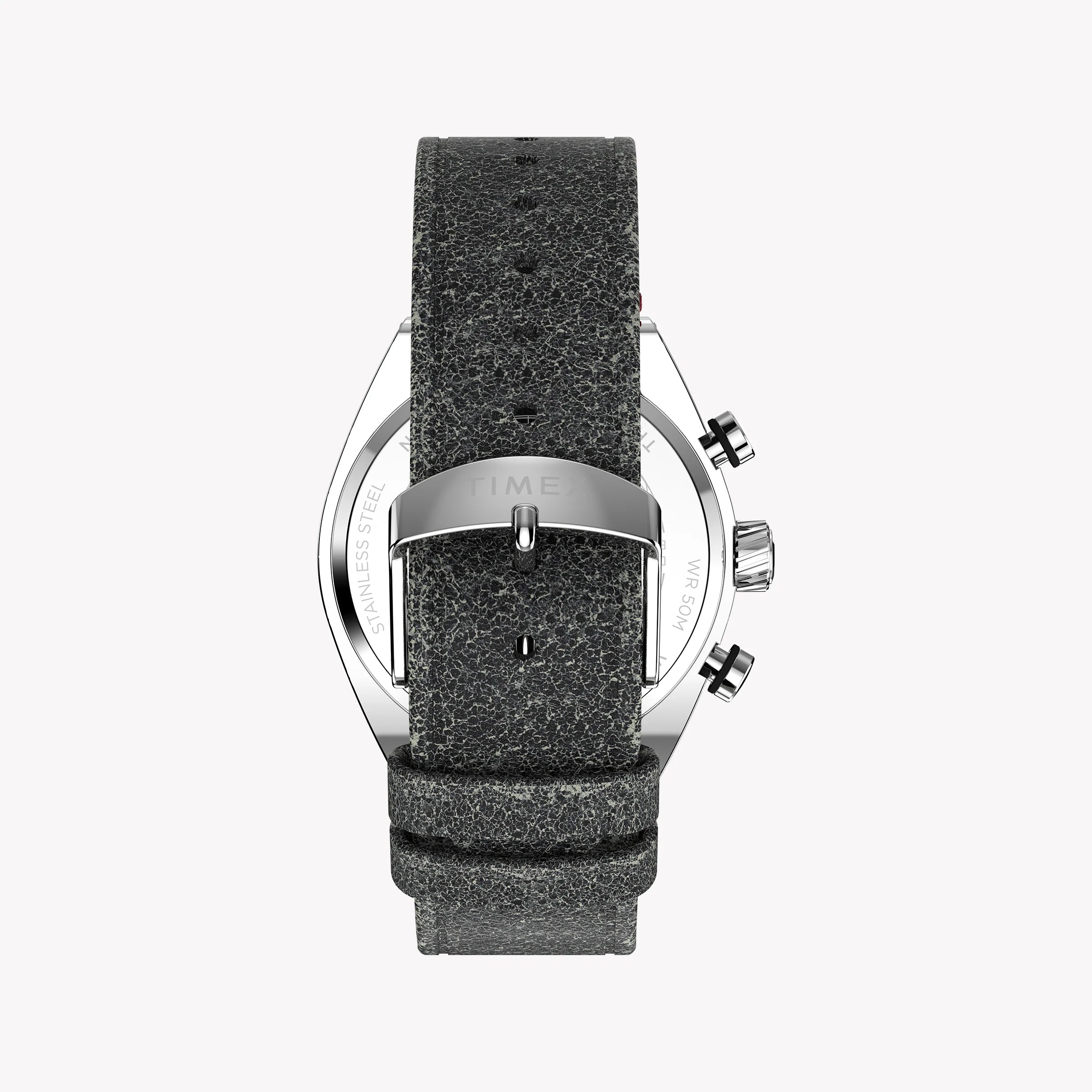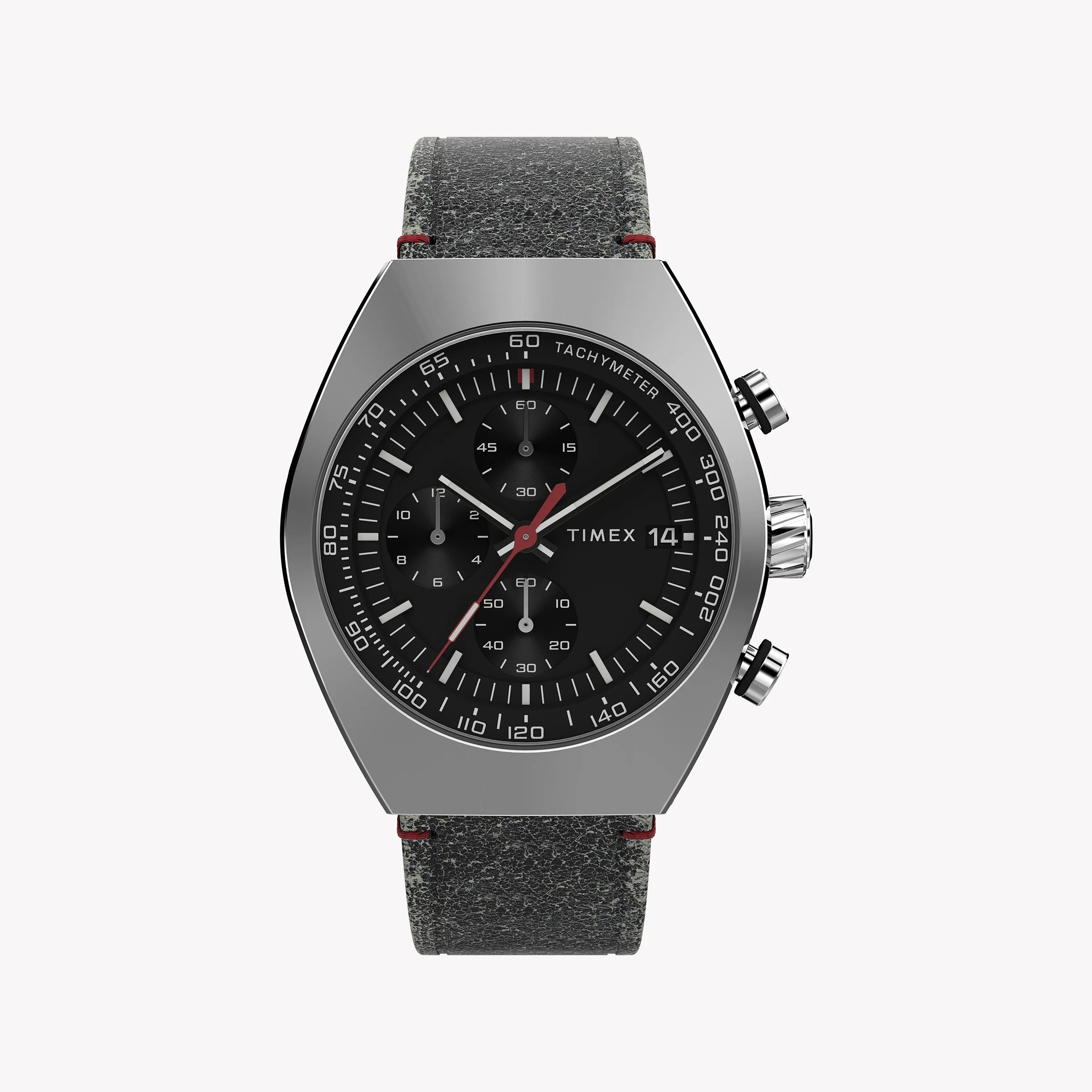 Kaufen Sie die Timex Herrenuhr Legacy Tonneau SST mit Edelstahlgehäuse, umweltfreundlichem schwarzem Lederarmband, Chronographenwerk, Datumsfenster und 50 m Wasserdichtigkeit. Perfekt für jeden Anlass.