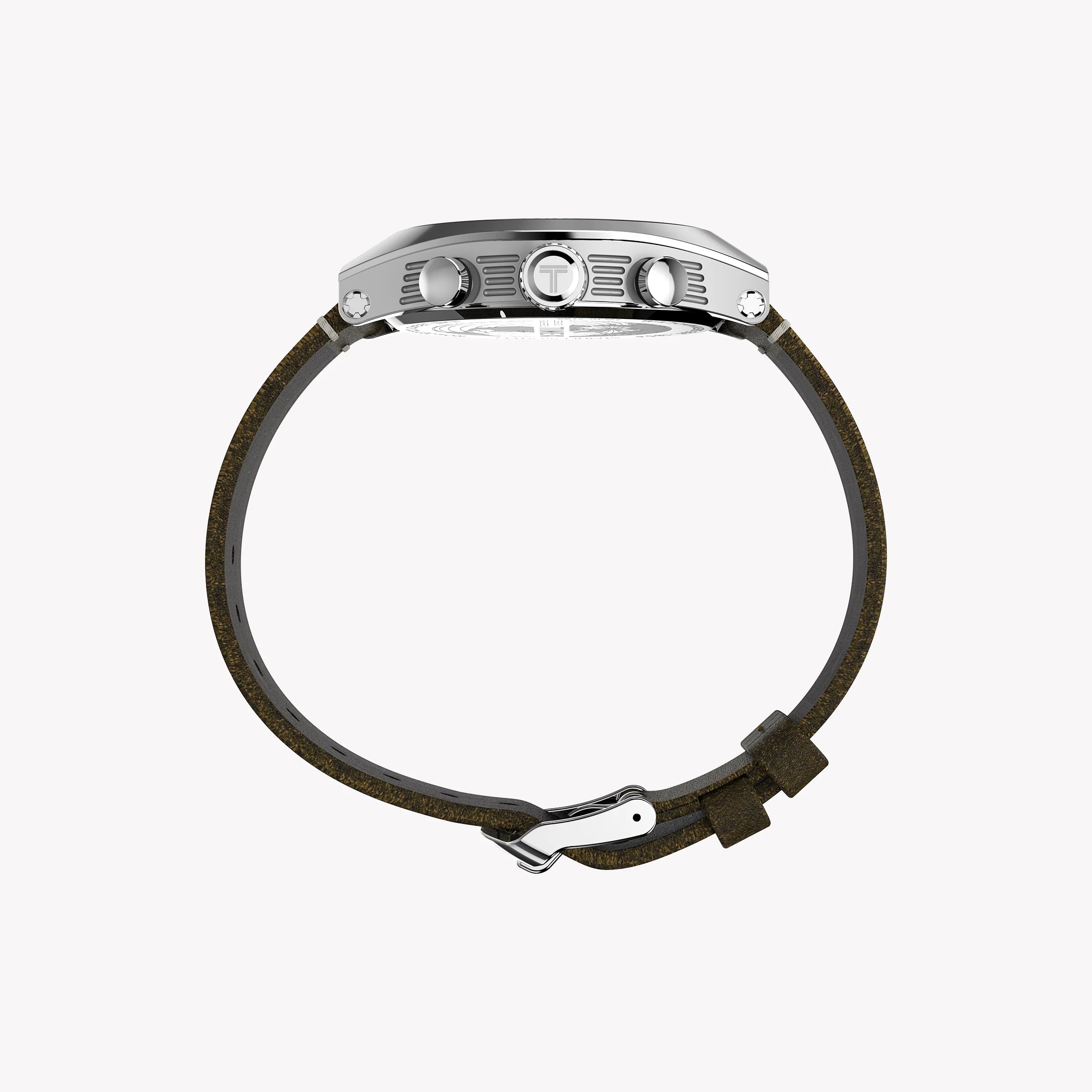 TIMEX MEN'S LEGACY TONNEAU SST - كرونوغراف أنيق مستوحى من الطراز القديم مع حزام من الجلد البني