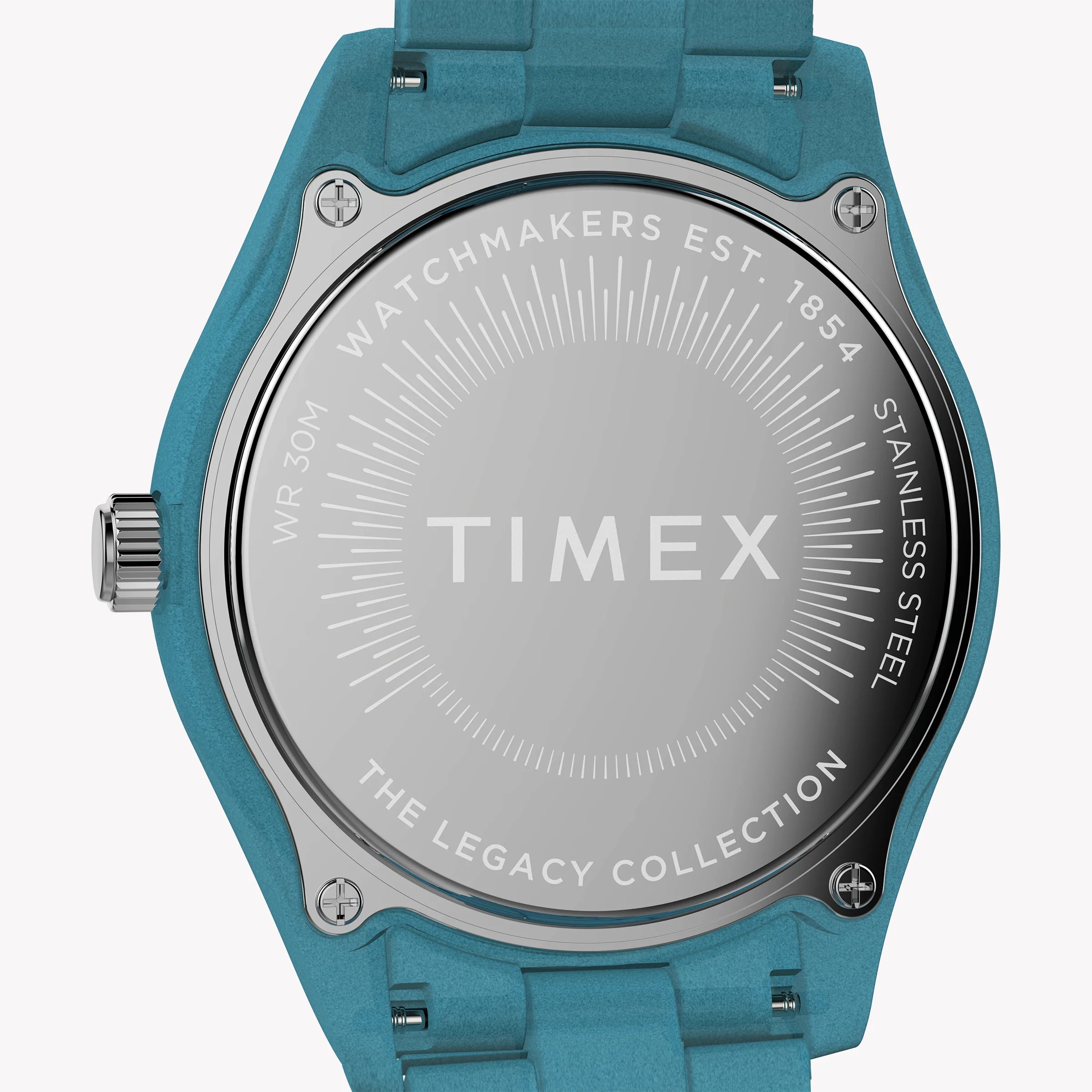 Kaufen Sie die Timex Legacy Ocean Blue-Armbanduhr für Damen, hergestellt aus recyceltem Plastik, das im Meer gestrandet ist. Solarbetrieben, 37 mm, wasserdicht und stilvoll für jeden Anlass.