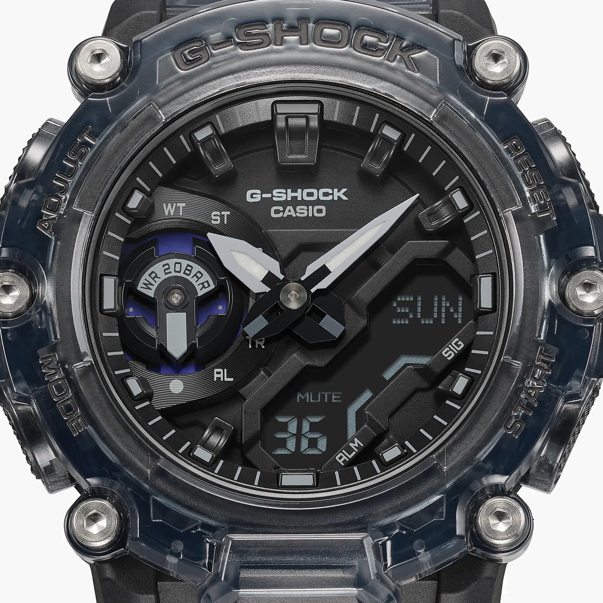 خطوة بثقة إلى كل تحدٍ مع GA-2200SKL-8ADR G-SHOCK، ساعة تمنحك القوة للتعبير عن ثقتك، جاهزة لمغامرات مثيرة والمهام اليومية.