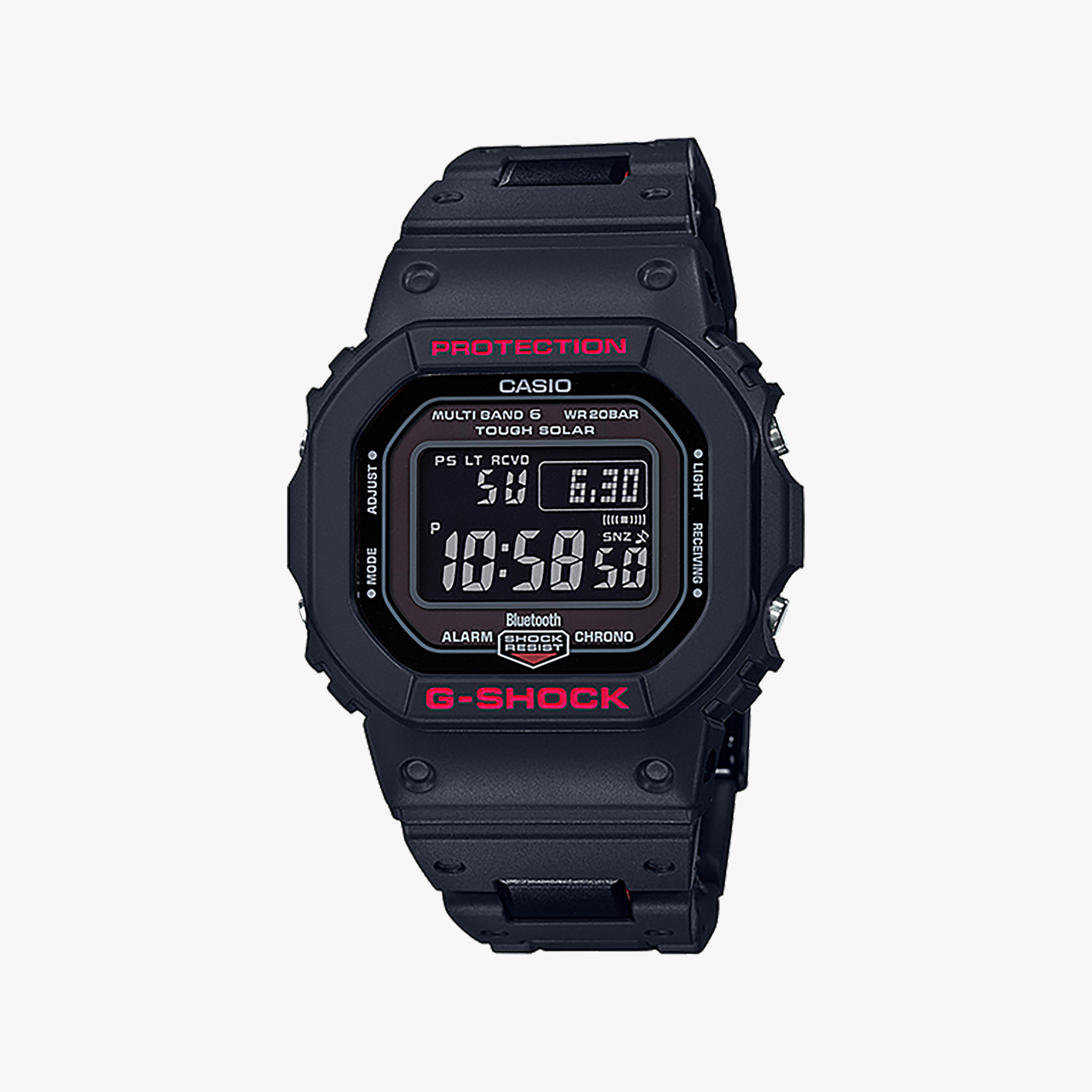 - مقاومة للماء: مع تصنيف مقاومة للماء يصل إلى 200 متر، فإن GW-B5600HR-1DR جاهزة لأي مغامرة مائية، مما يشجعك على استكشاف العالم من حولك!