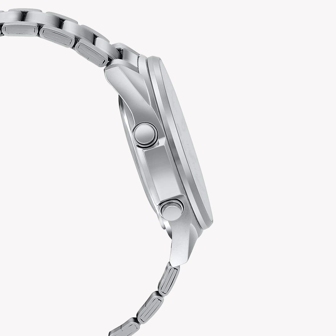 - مظهر لافت: تتميز بعلبة مصنوعة من الفولاذ المقاوم للصدأ بحجم 42 مم وبإنهاء فضي مذهل، هذه الساعة تعزز بسلاسة كل من الأزياء الكاجوال والرسمية.