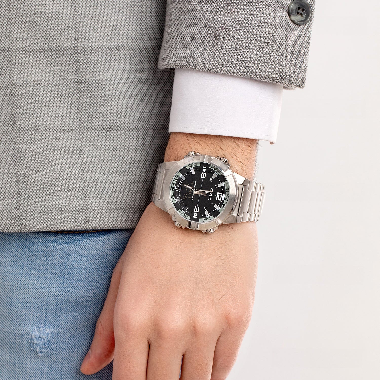 ساعة كاسيو AMW-870D-1AVDF - ساعة رجالية جاهزة للمغامرة بسوار من الستانلس ستيل ومينا سوداء