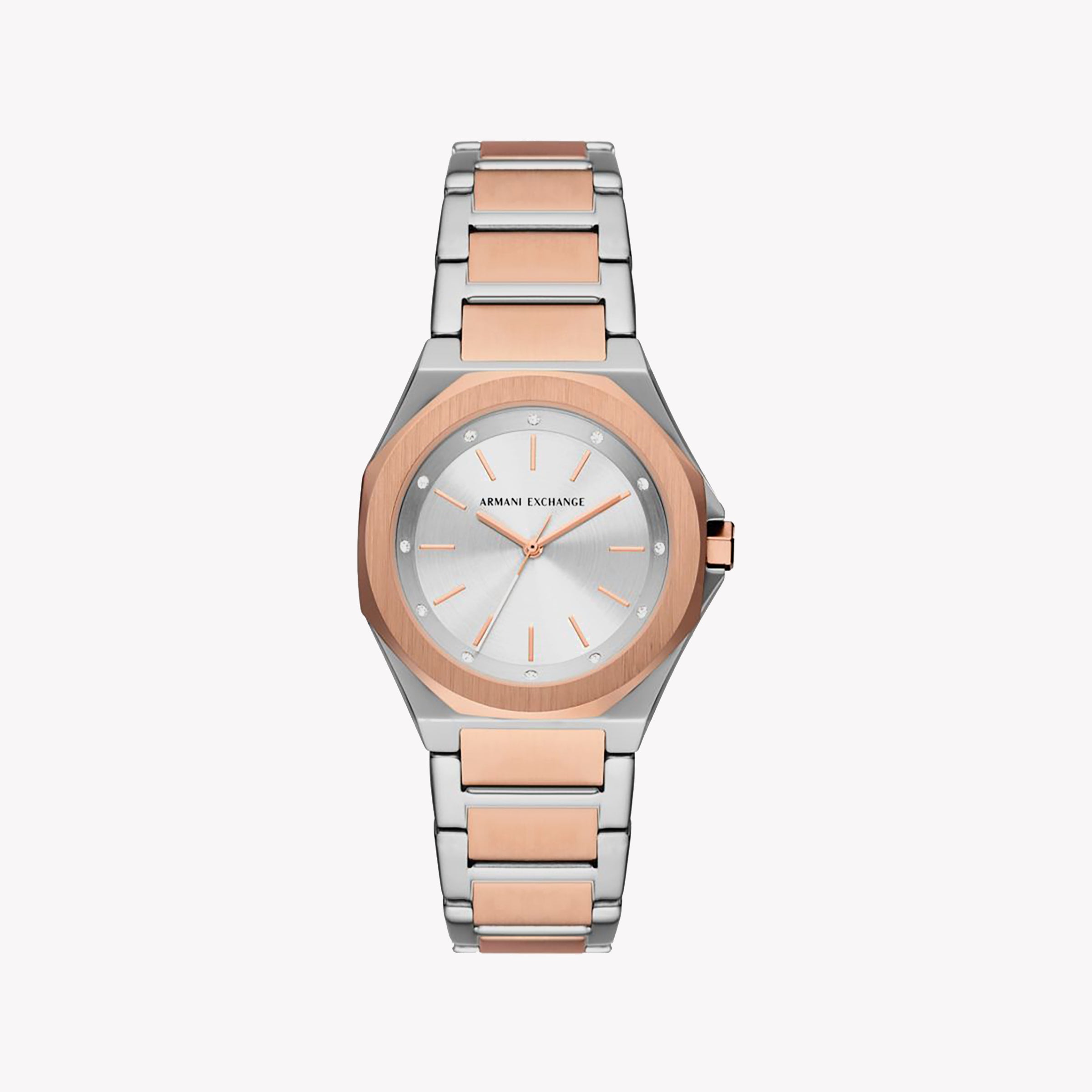 ARMANI EXCHANGE AX4607 - ساعة نسائية أنيقة ومتطورة مع لمسات من الذهب الوردي الفضي