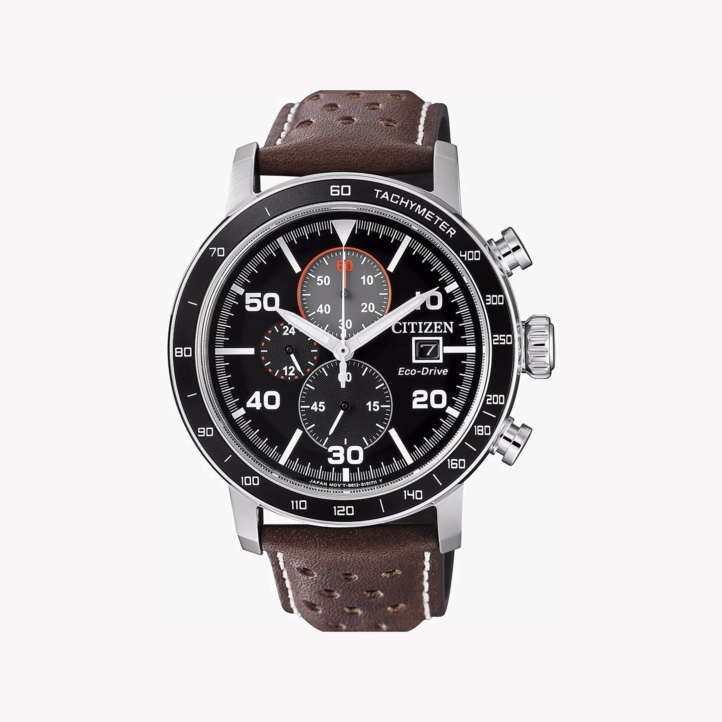 سيتيزن CA0641-24E - أناقة عصرية: كرونوغراف من الفولاذ المقاوم للصدأ وساعة جلدية