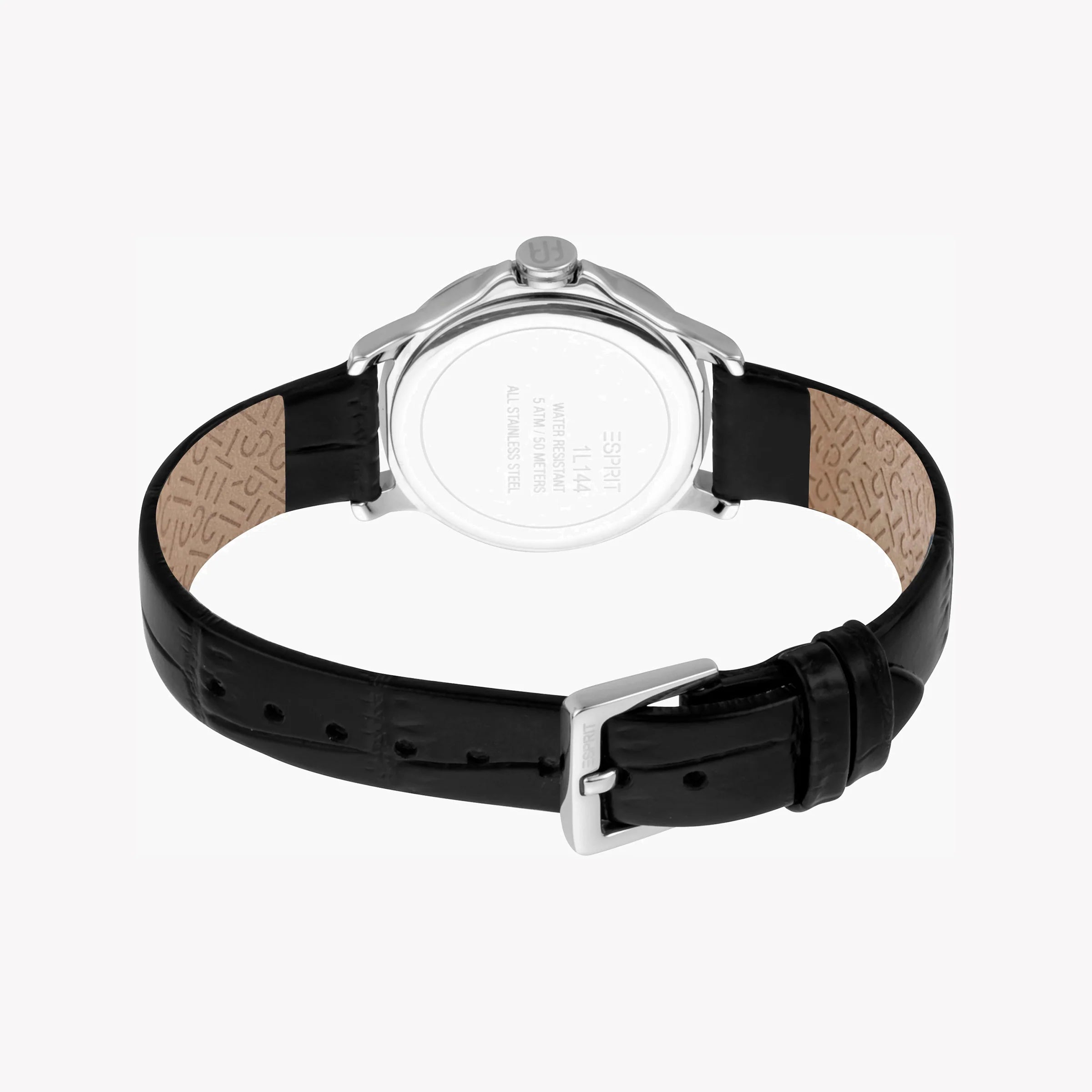 ساعة ESPRIT للسيدات بهيكل فضي من الستانلس ستيل وسوار جلد أسود