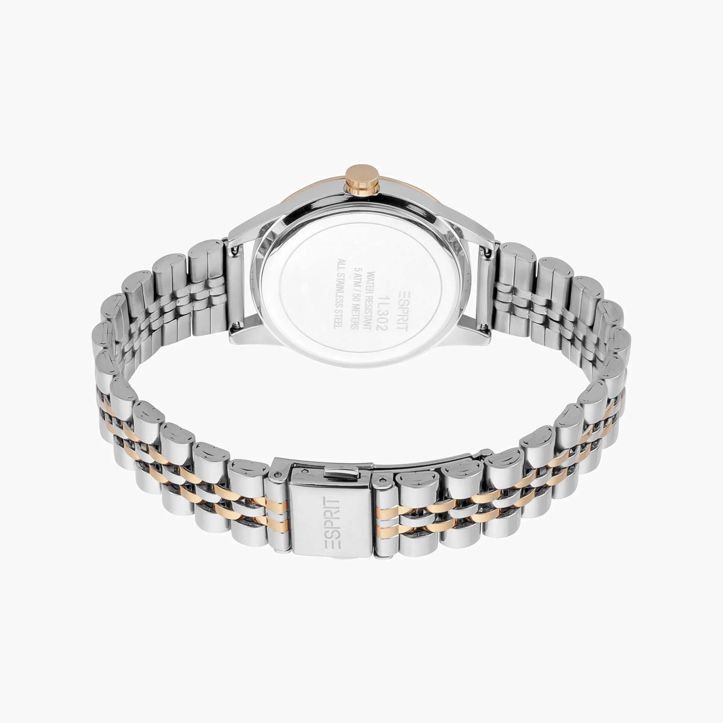 ساعة ESPRIT للسيدات بهيكل فضي من الستانلس ستيل وسوار من الستانلس ستيل باللون الفضي والذهبي الوردي