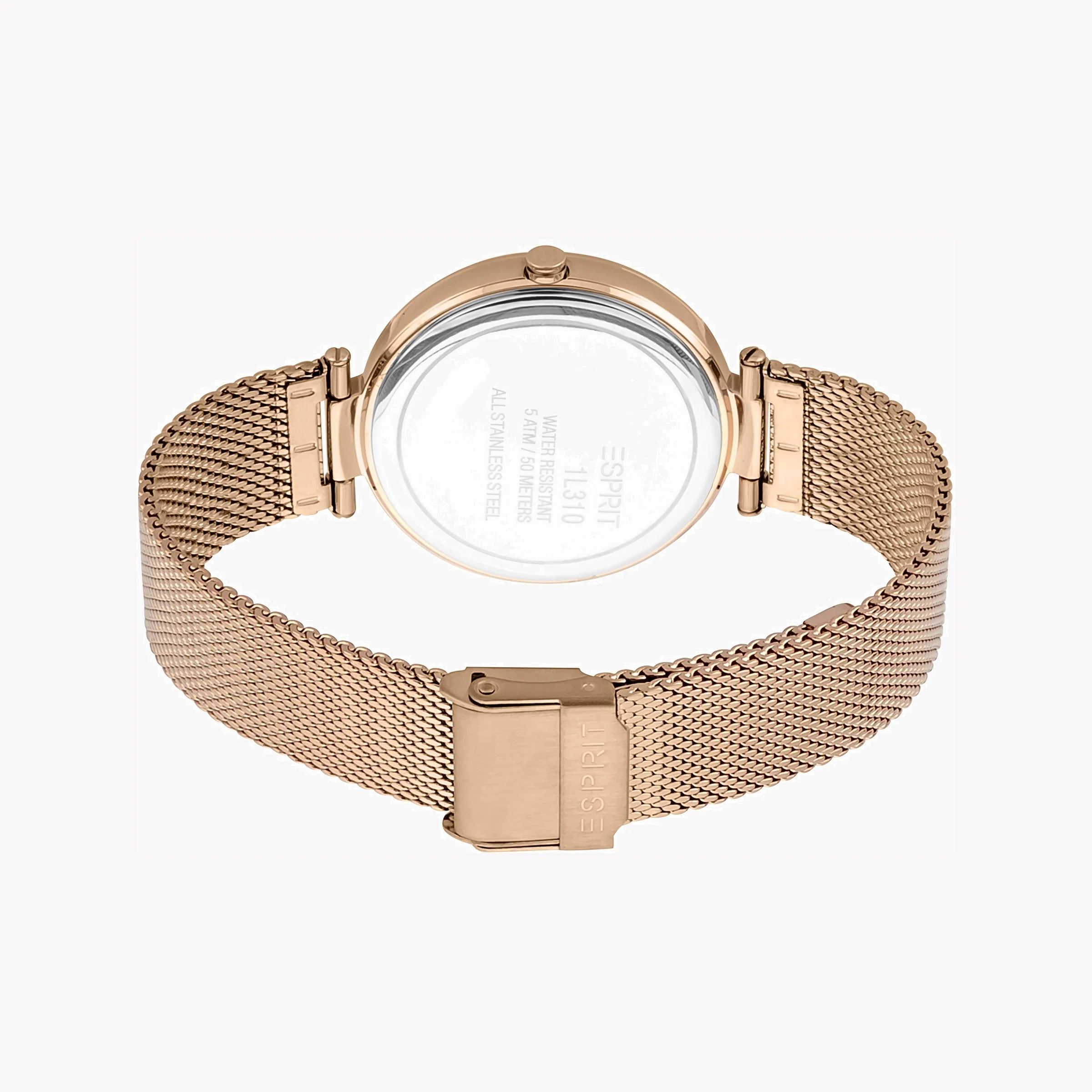 ساعة ESPRIT للسيدات بهيكل من الستانلس ستيل باللون الذهبي الوردي وسوار من الستانلس ستيل باللون الذهبي الوردي