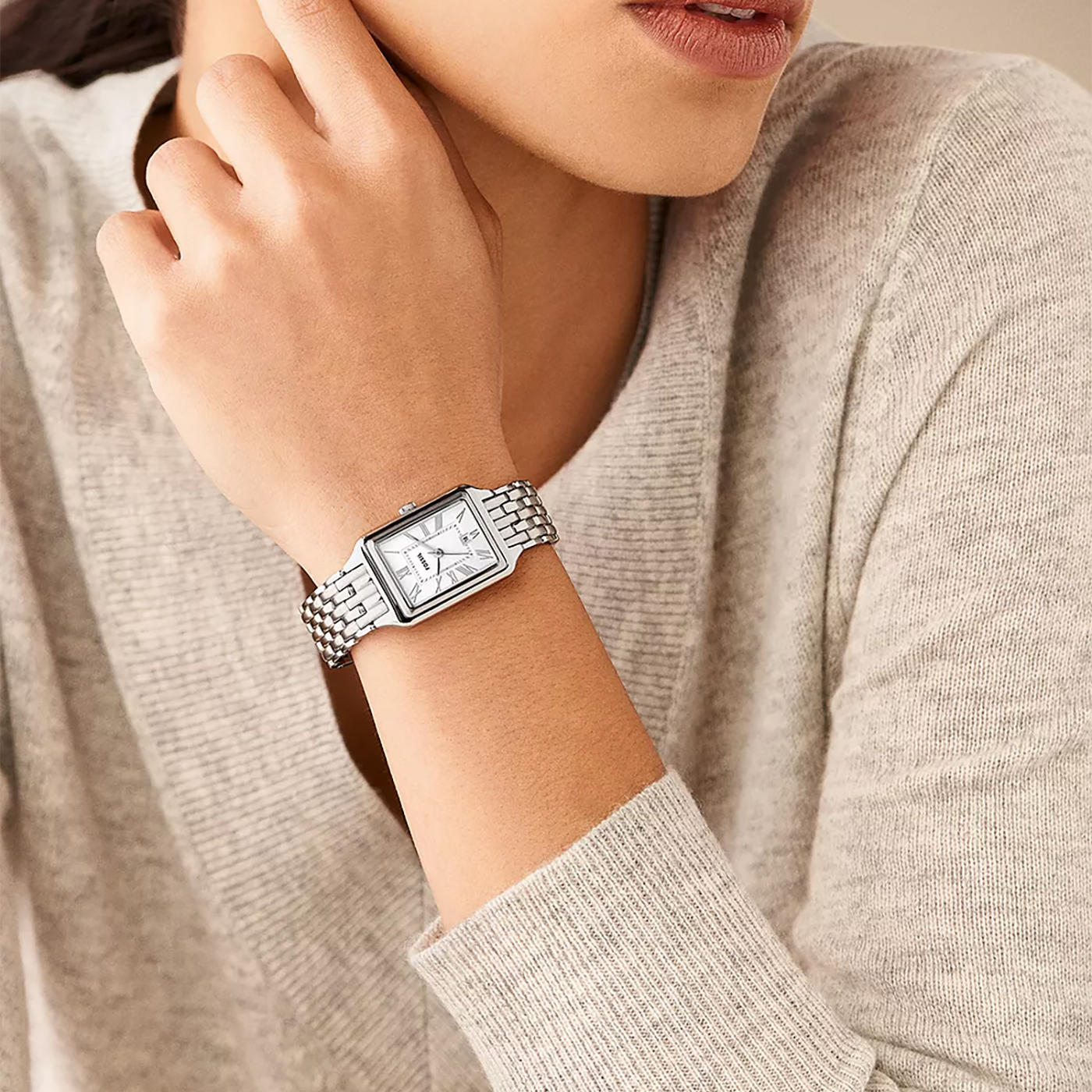 FOSSIL ES5221 TIMELESS ELEGANCE - ساعة نسائية فضية من الستانلس ستيل بتصميم كلاسيكي ووظيفة التاريخ