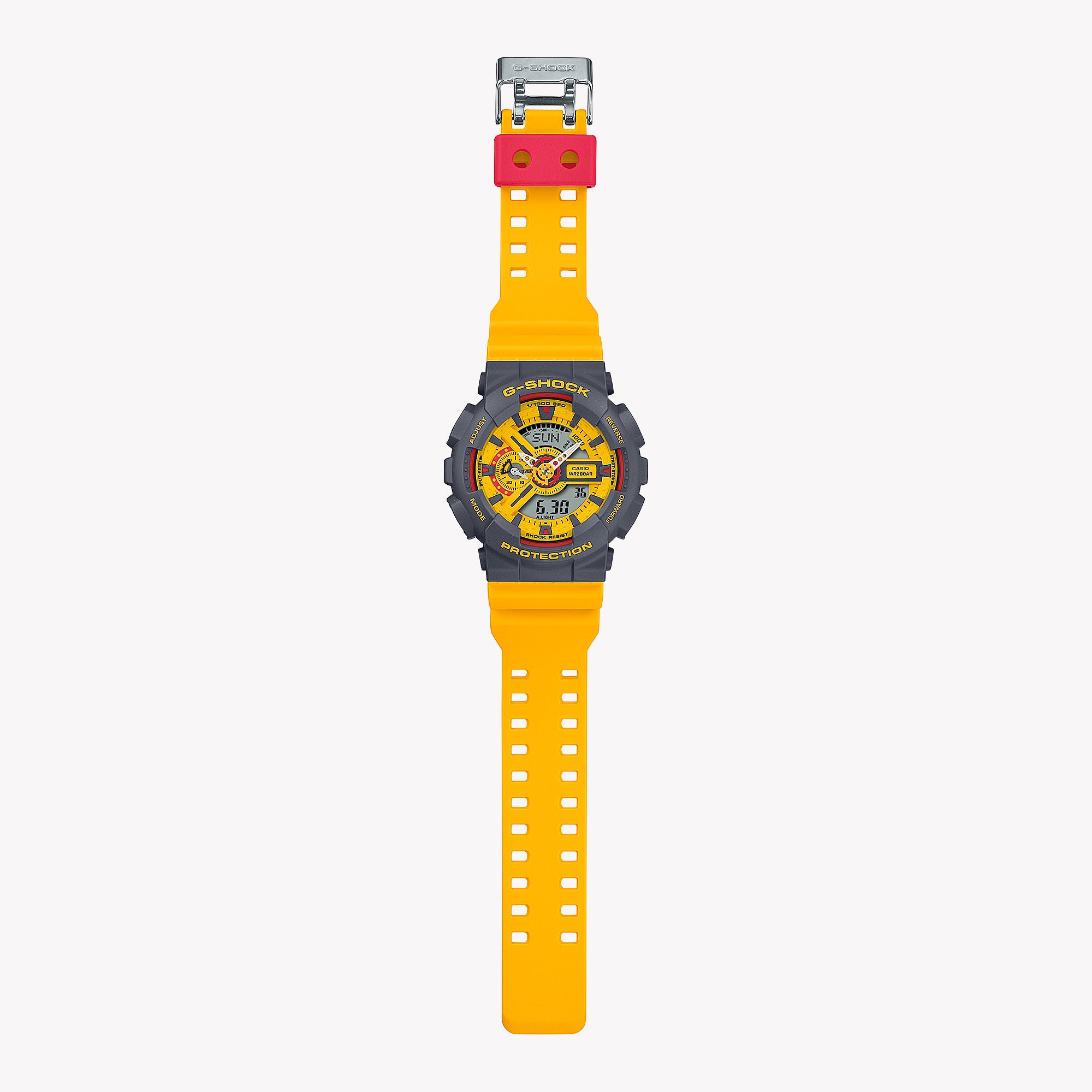 Achetez la montre G-SHOCK GA-110Y-9ADR, dotée d'un boîtier gris audacieux, d'un bracelet jaune vif, d'une résistance à l'eau de 200 m et de fonctions polyvalentes pour votre style de vie actif.