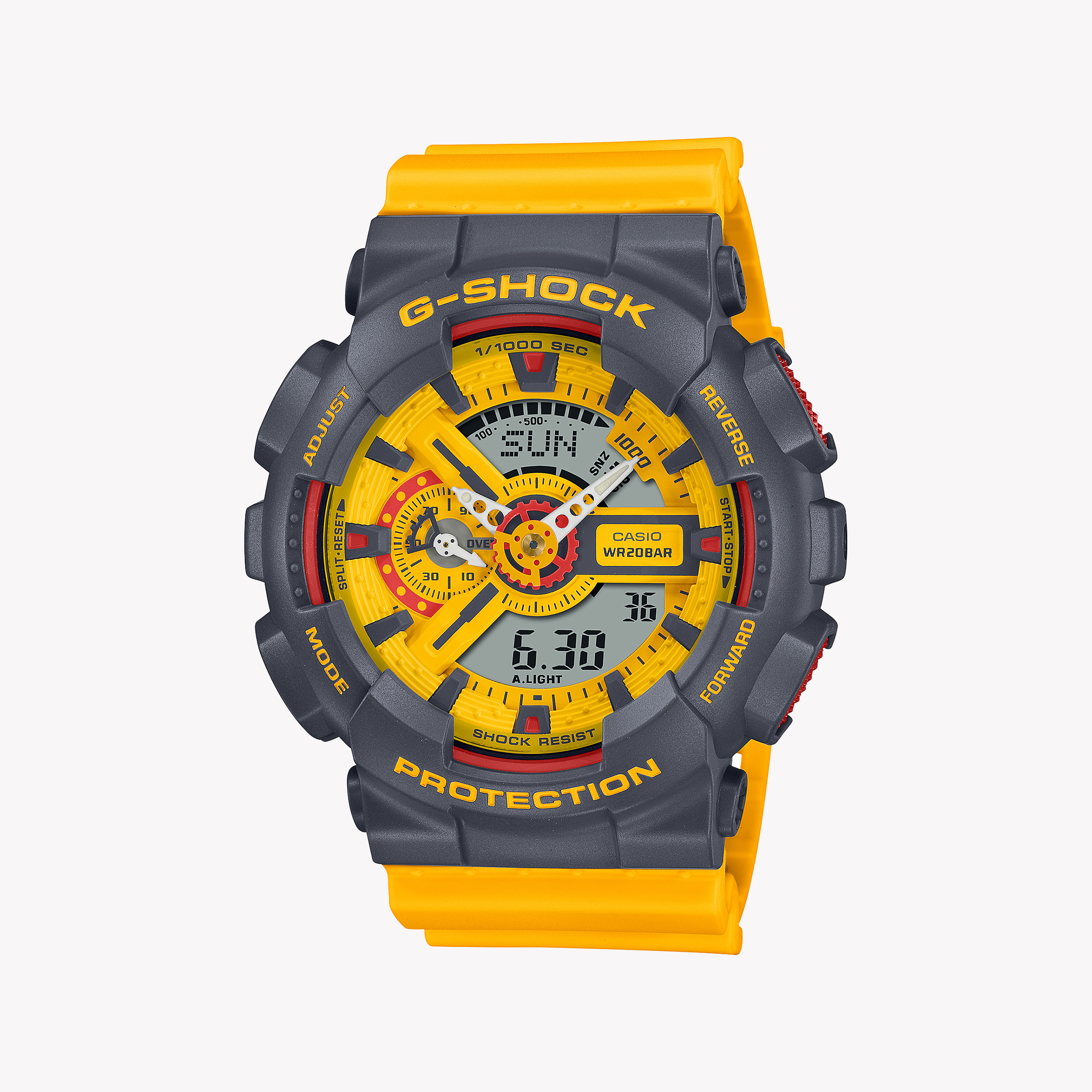 ساعة كاسيو جي شوك GA-110Y-9ADR - جرأة رياضية باللون الأصفر والرمادي للرجال