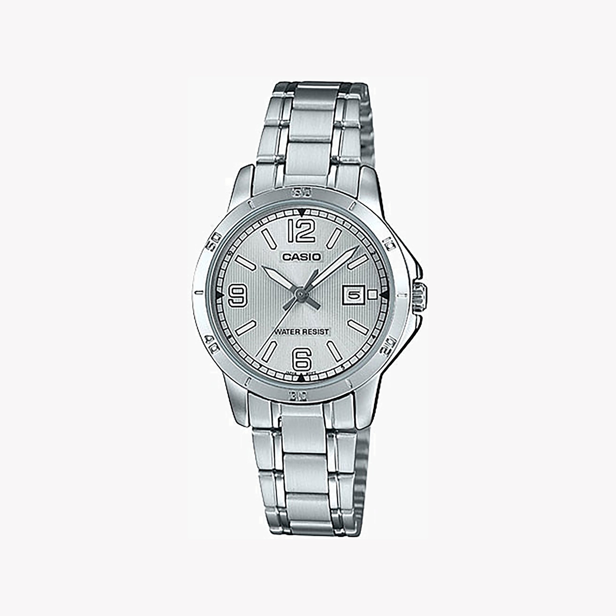 ساعة كاسيو LTP-V004D-7B2UDF الأنيقة - ساعة نسائية فضية أنيقة مع سوار متين من الفولاذ المقاوم للصدأ
