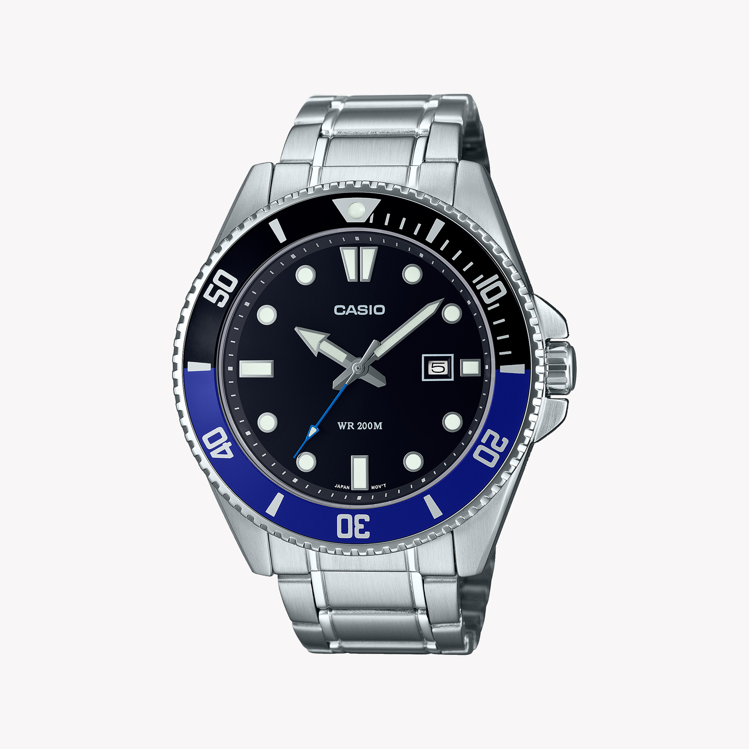 كاسيو MDV-107D-1A2VDF - ساعة غواص رياضية أنيقة بمينا أسود وسوار من الفولاذ المقاوم للصدأ
