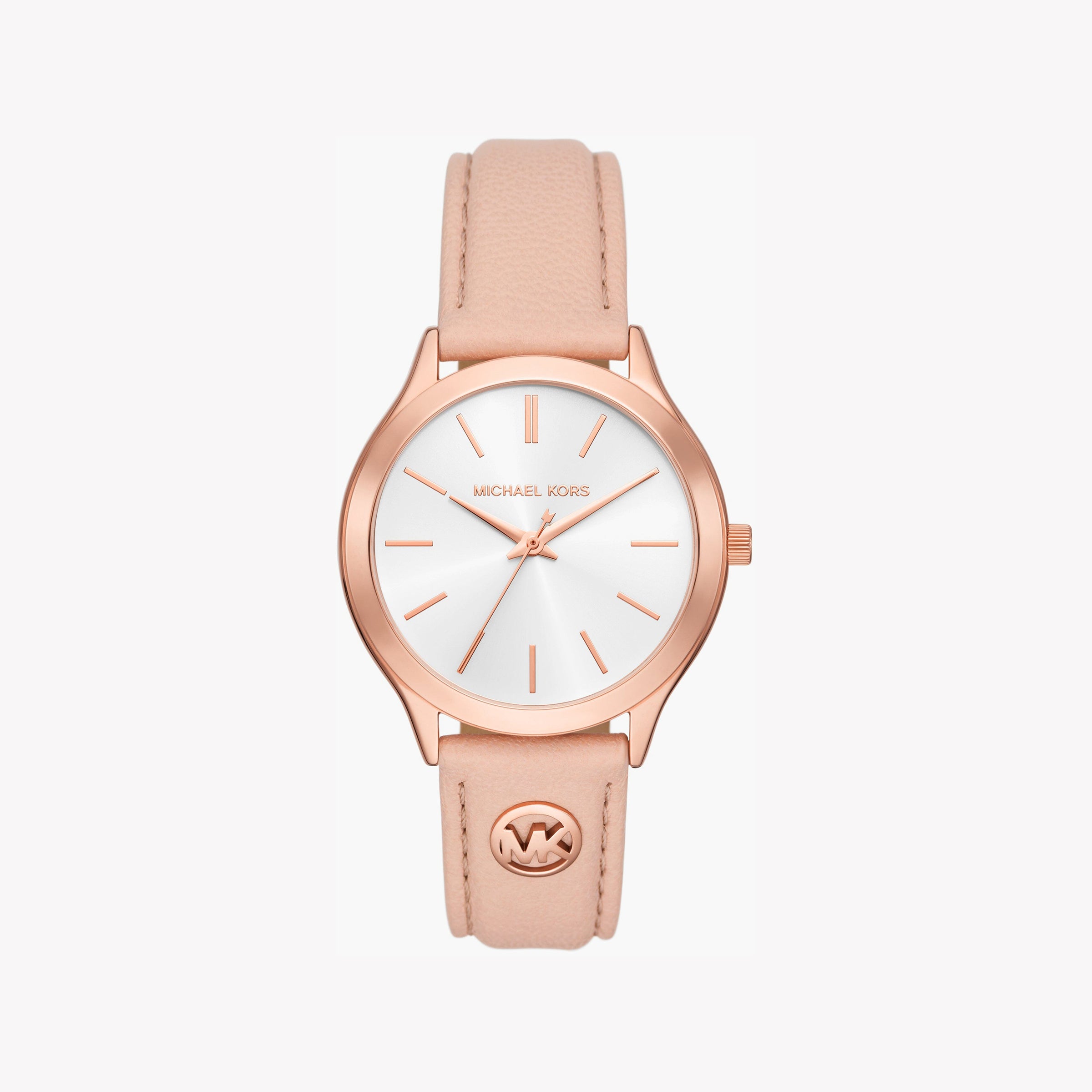 مايكل كورس MK1078SET - ساعة نسائية أنيقة باللون الذهبي الوردي مع حزام من الجلد الوردي