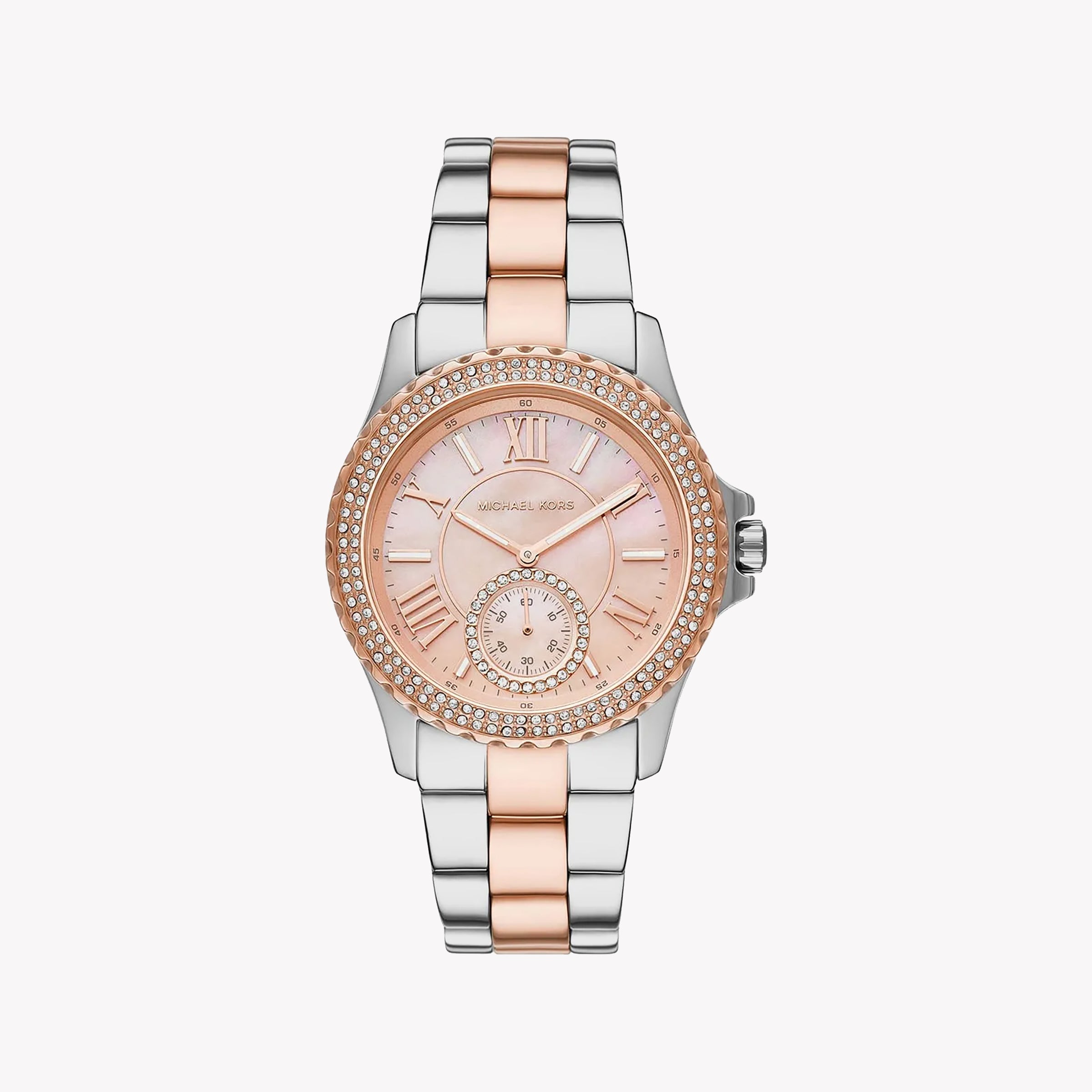 ساعة مايكل كورس MK7402 الأنيقة - ساعة نسائية من الفولاذ المقاوم للصدأ باللون الذهبي الوردي والفضي